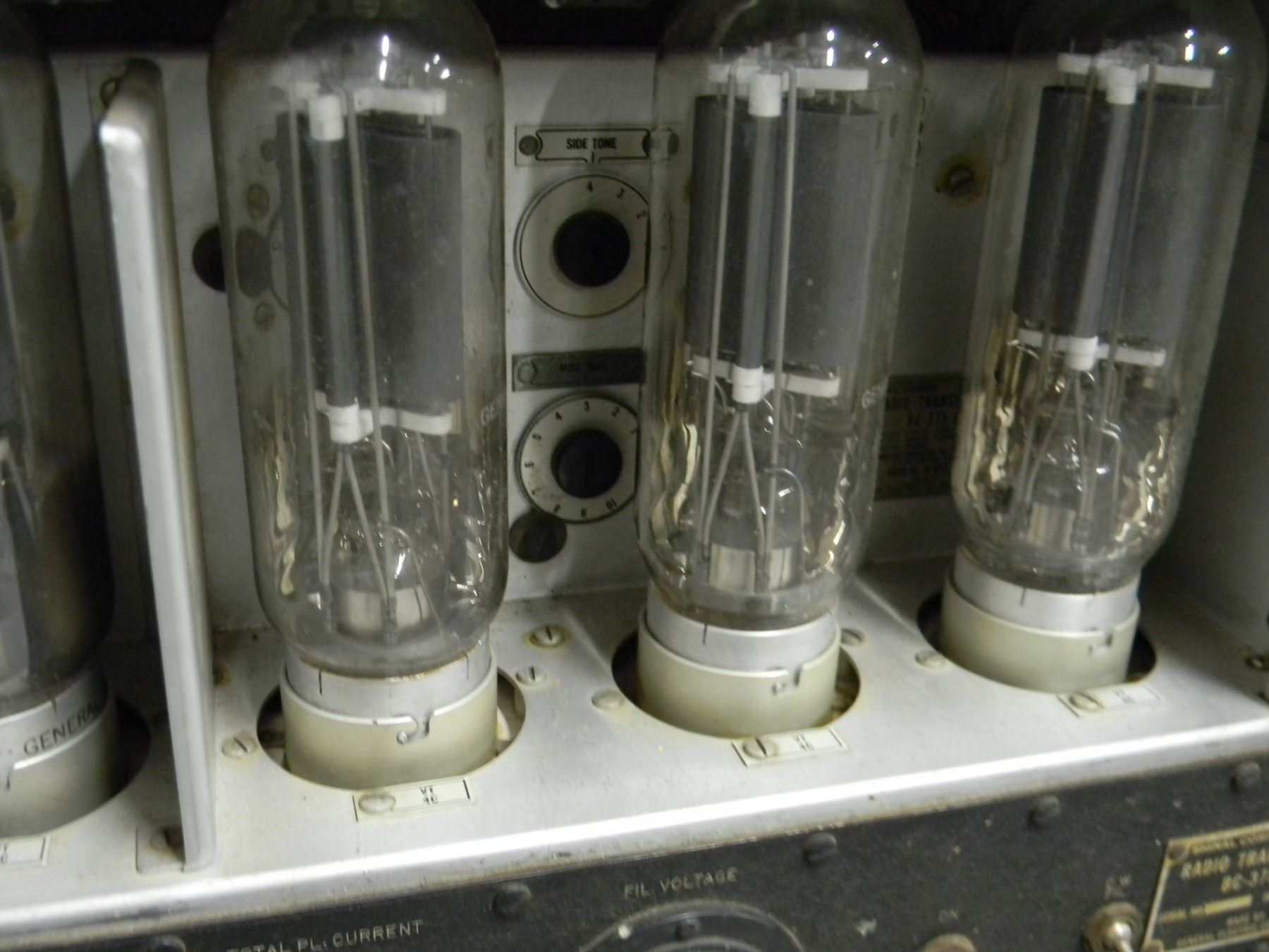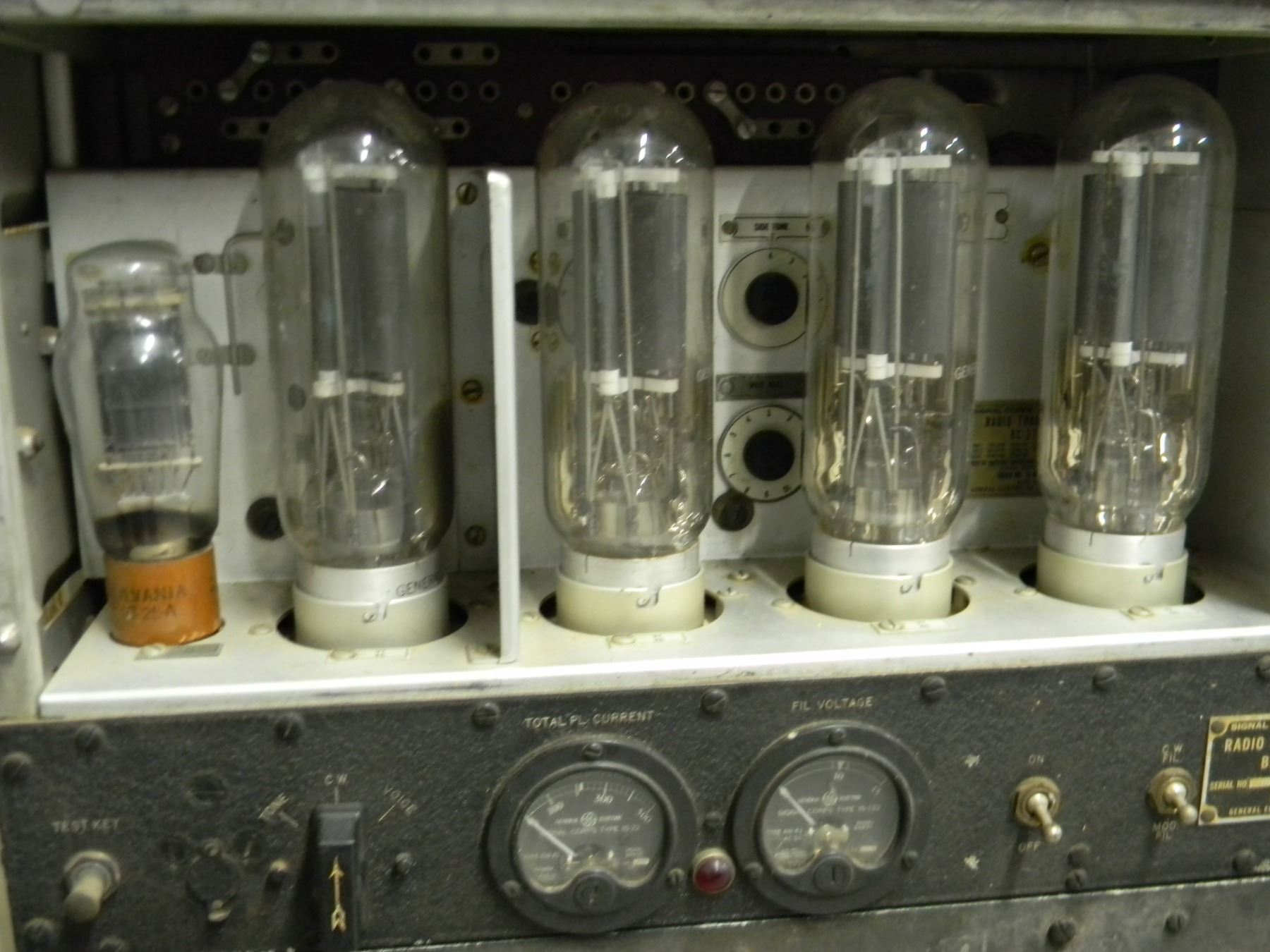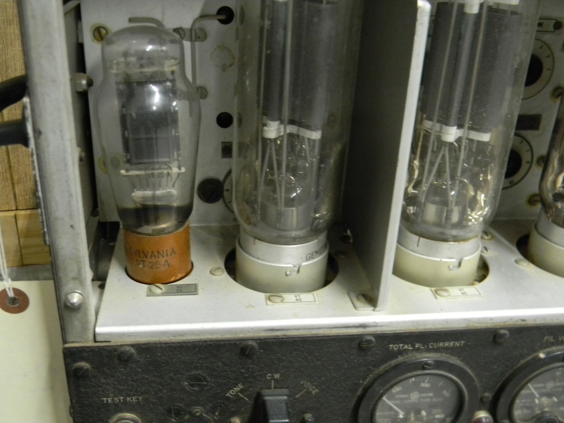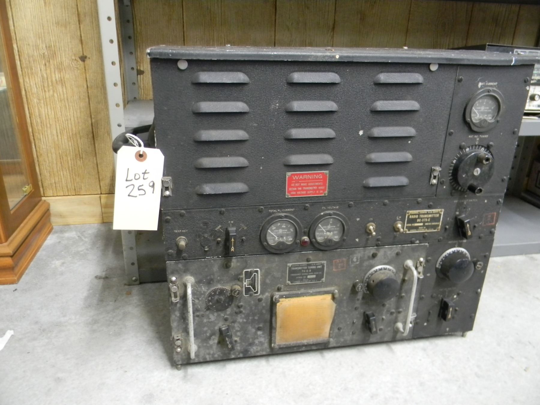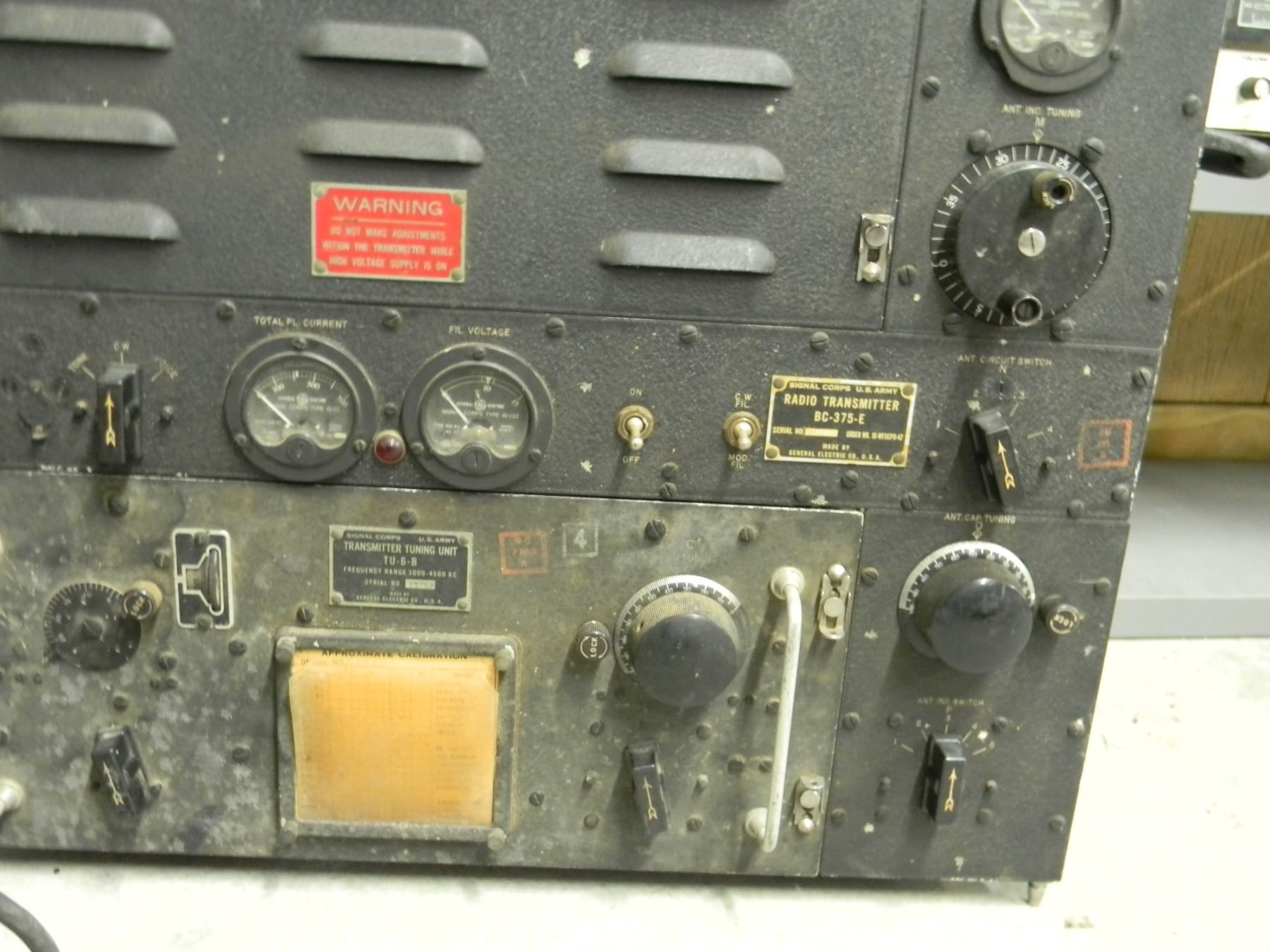 Signal Corps radio transmitter; model BC-375-E; appears complete with VT-4C tubes and VT-25 driver