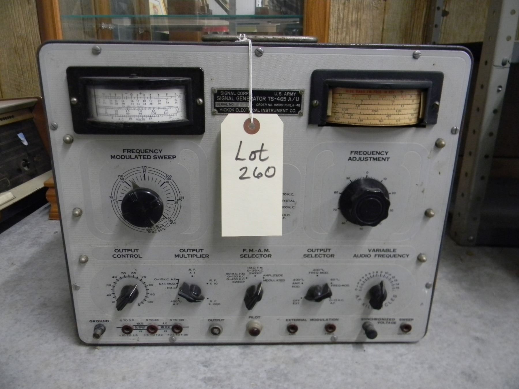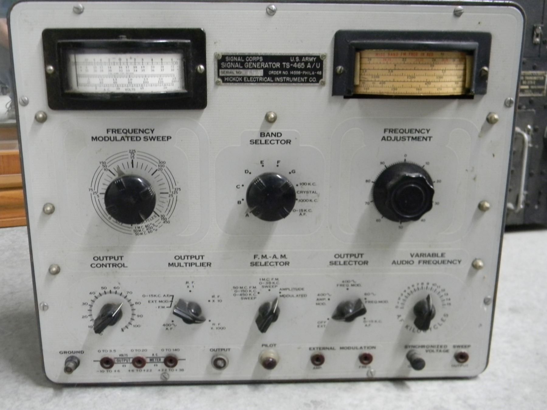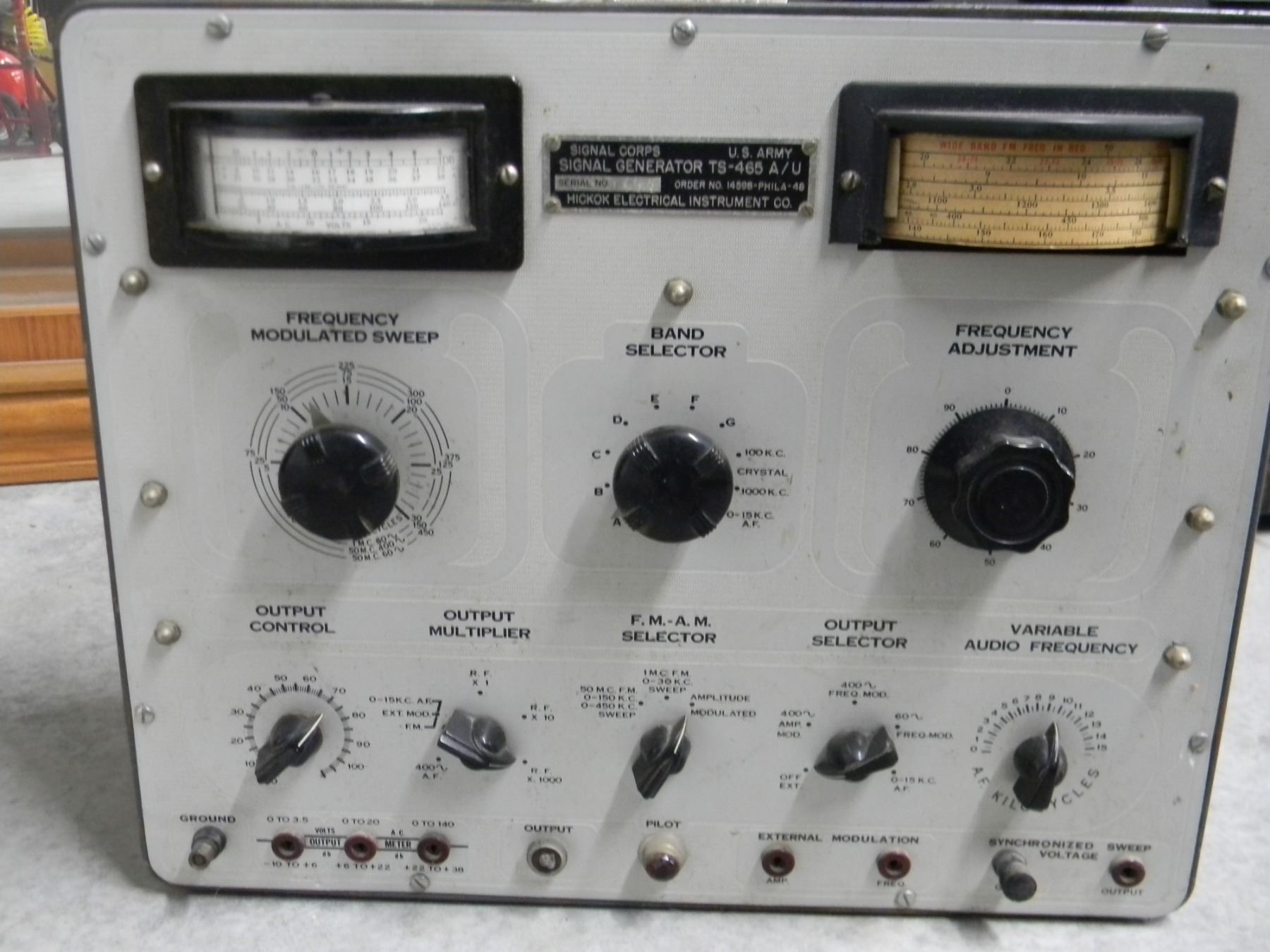 Signal Corps signal generator; model TS-465 A/U; right top dial cover missing.