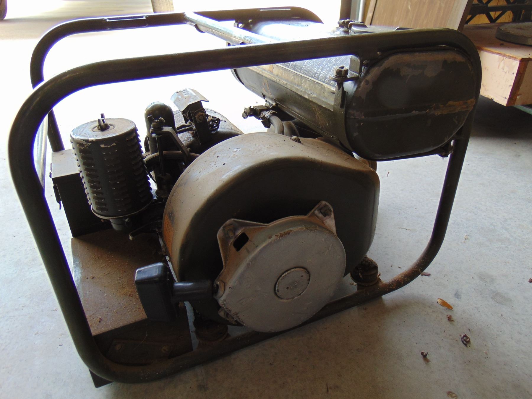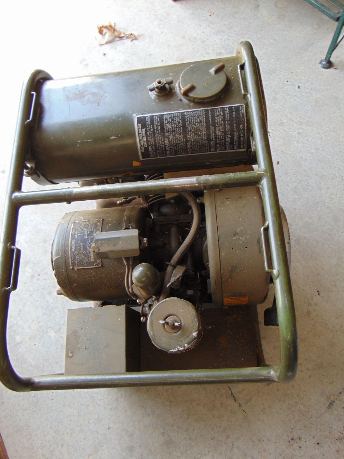 Military portable generator; model J-100; manufactured by Jacobsen Mfg. Co.; includes square Navy gas can with nozzle