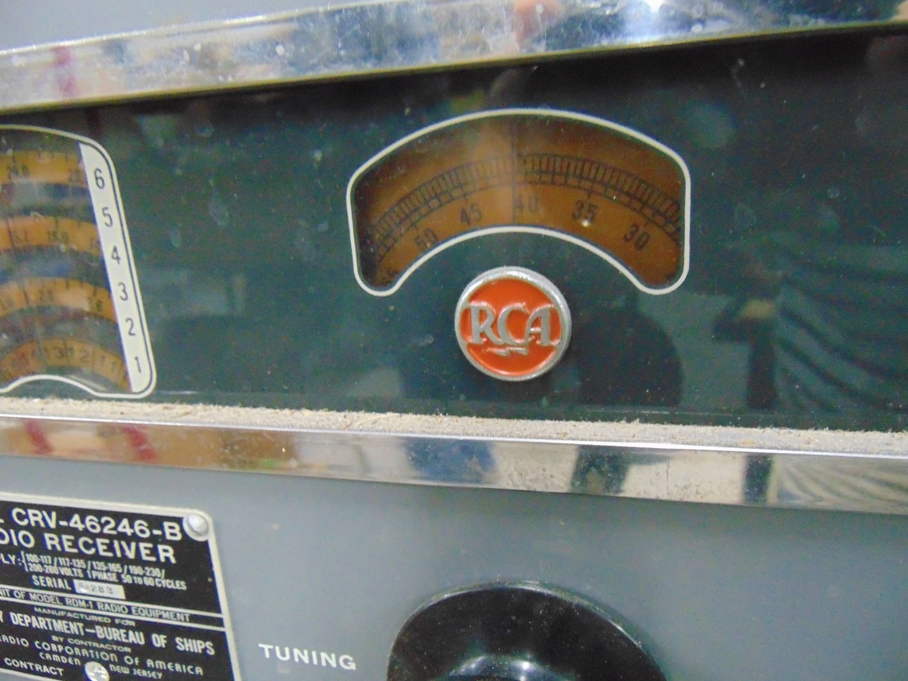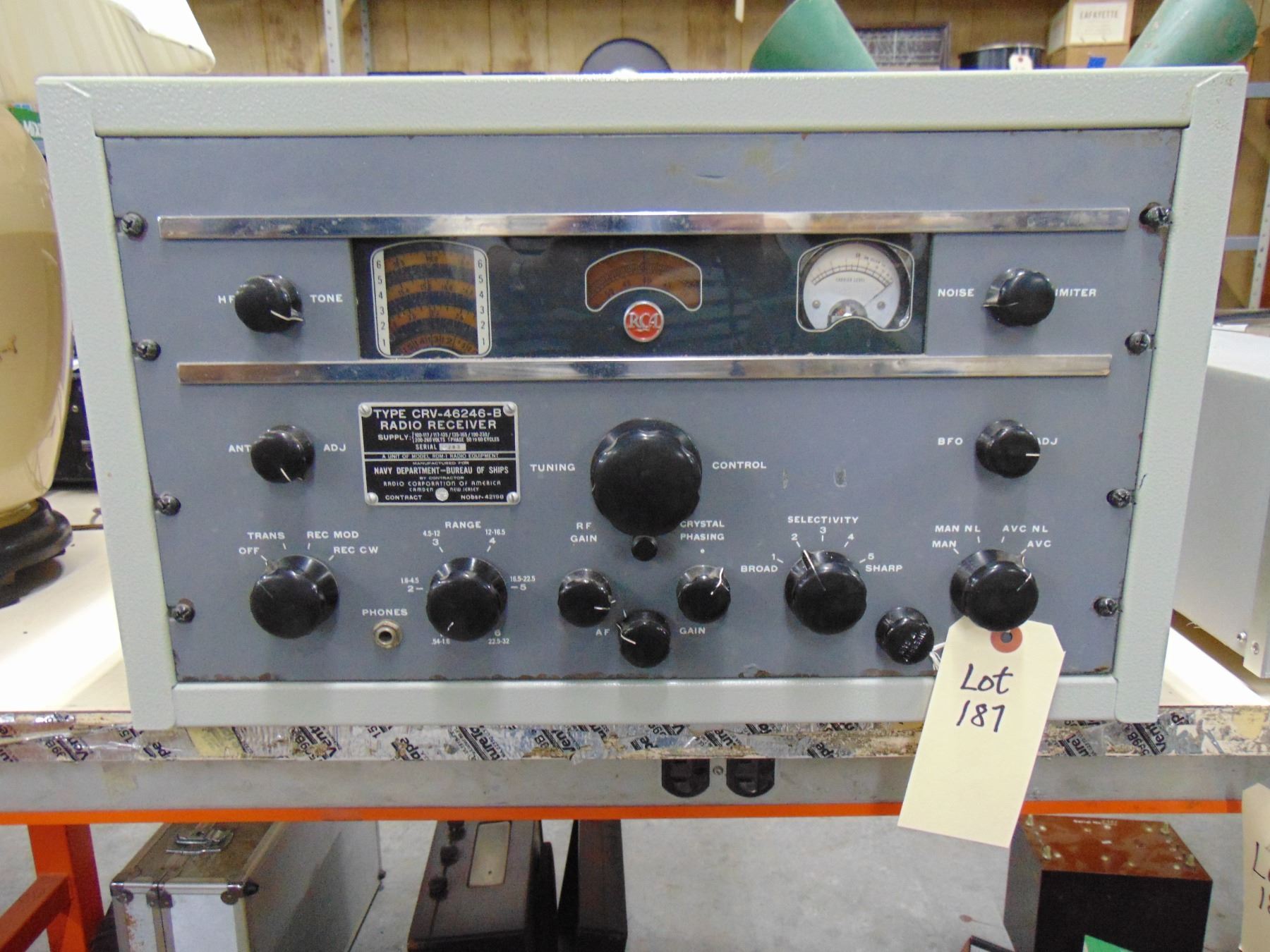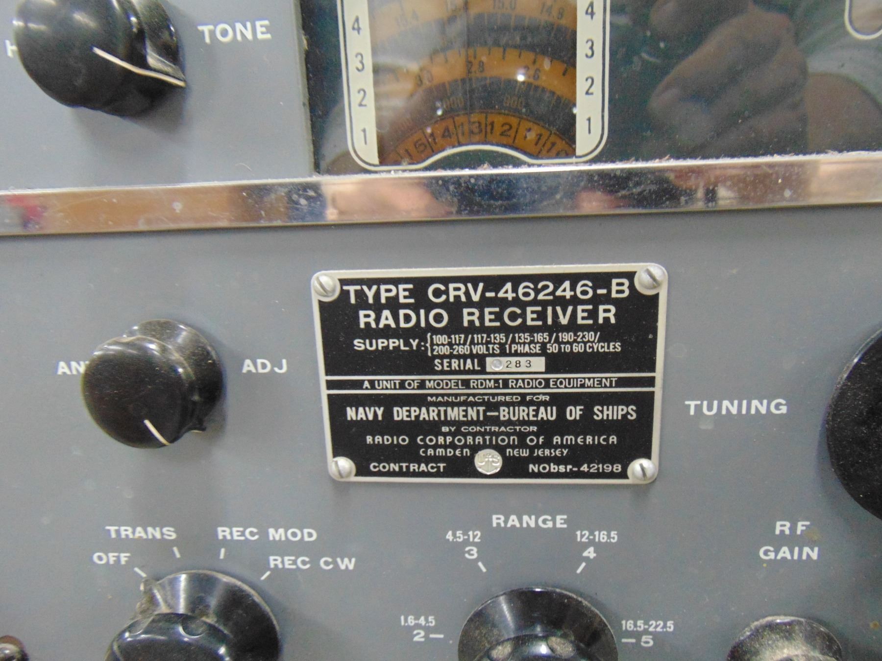 Navy receiver model CRV-46246-B manufactured by RCA with cabinet; very nice and clean