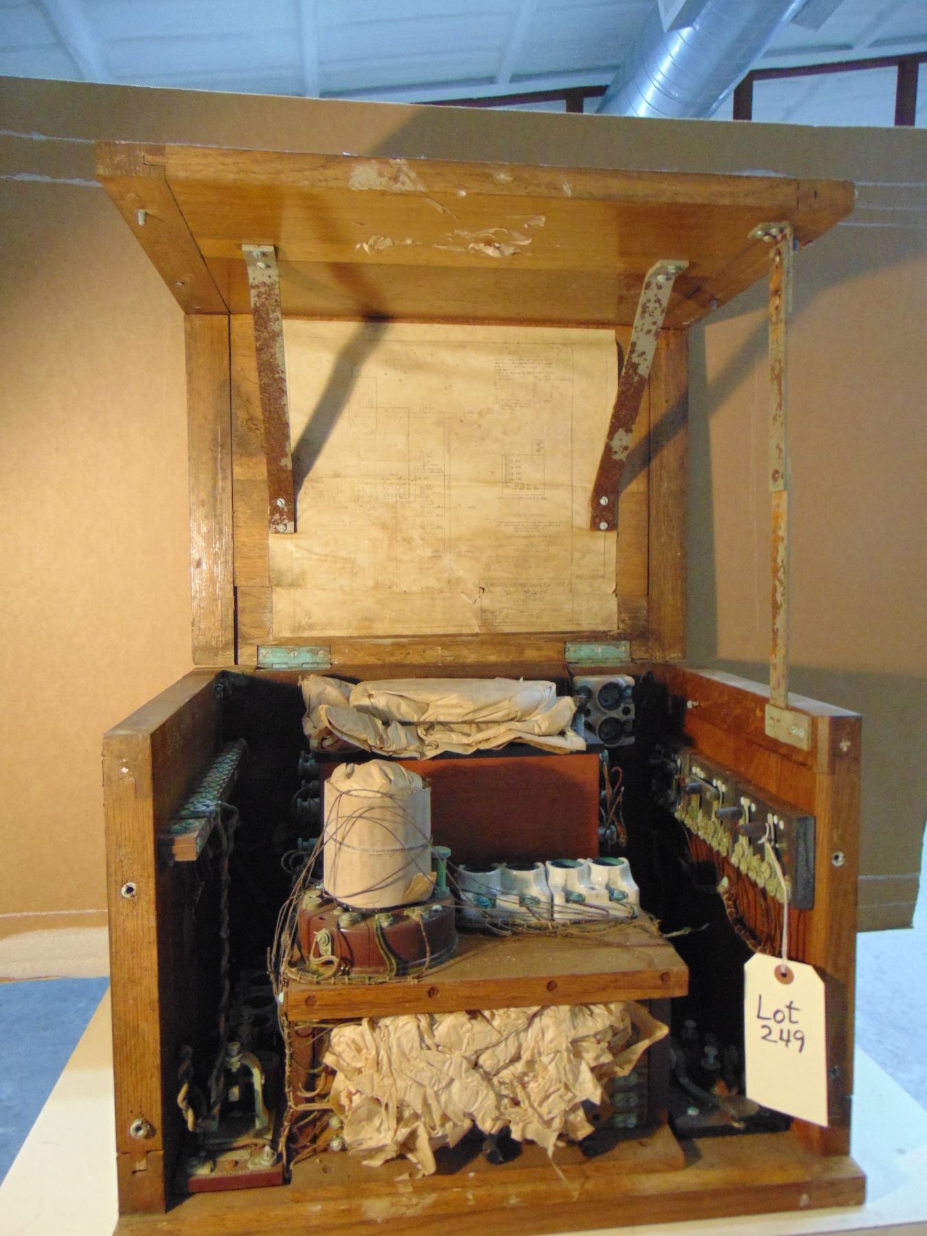 Morse Duplex Telegraph set. This set was manufactured by Western Electric for the War Department for use in World War One. Because of the original packing and condition of the inside in general, this unit does not appear to have ever been shipped overseas and put into use by American troops. Unit does appear to have be stored in damp areas at some time in it's life