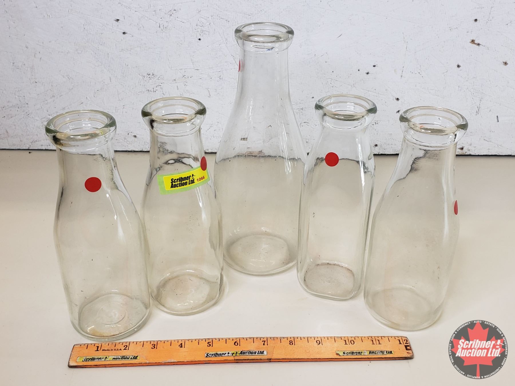 Milk Bottles (5) : 1/2 Quarts (4) & 1 Quart (1) (Tallest Measures 10"H) (SEE PICS!)