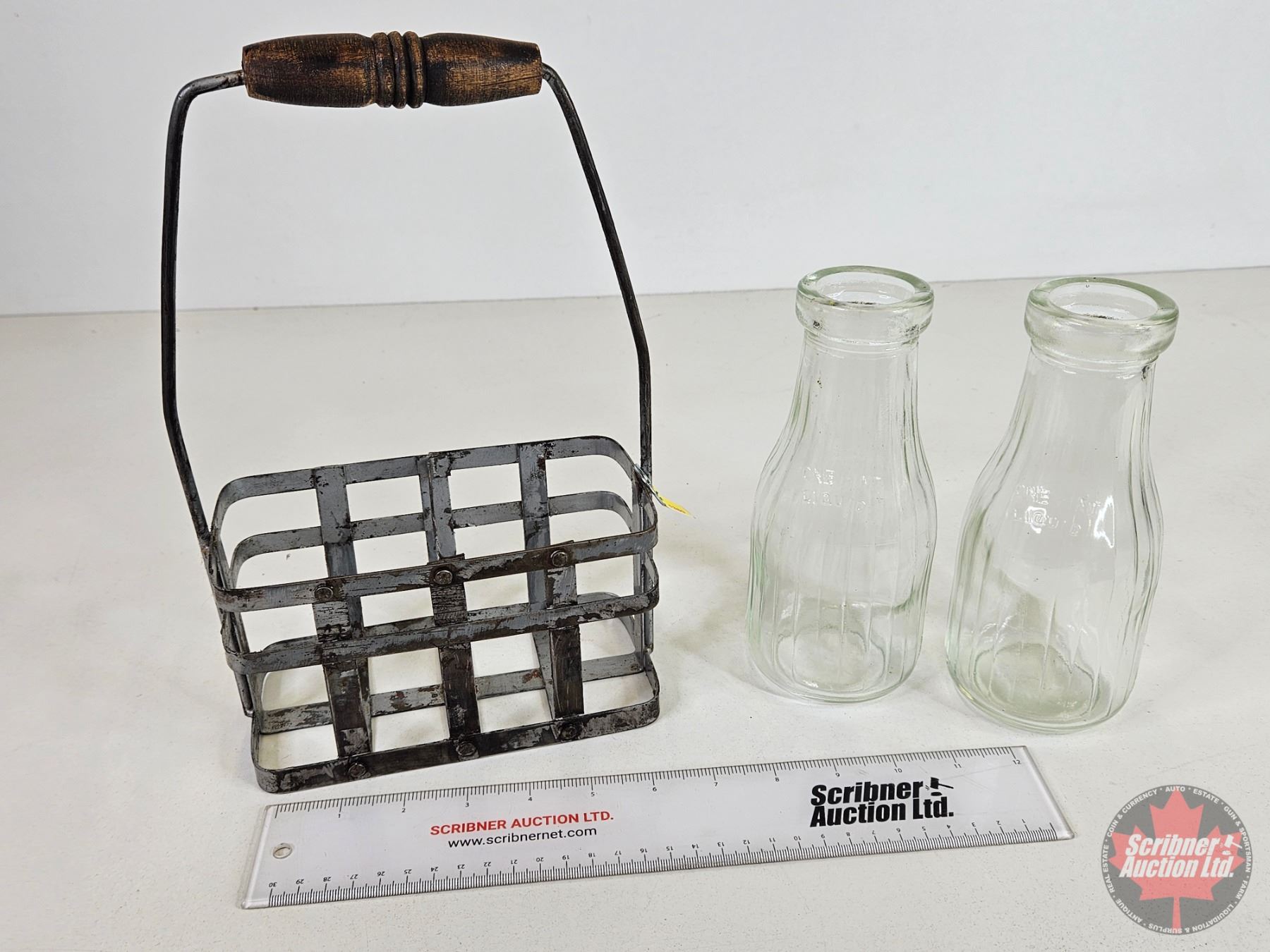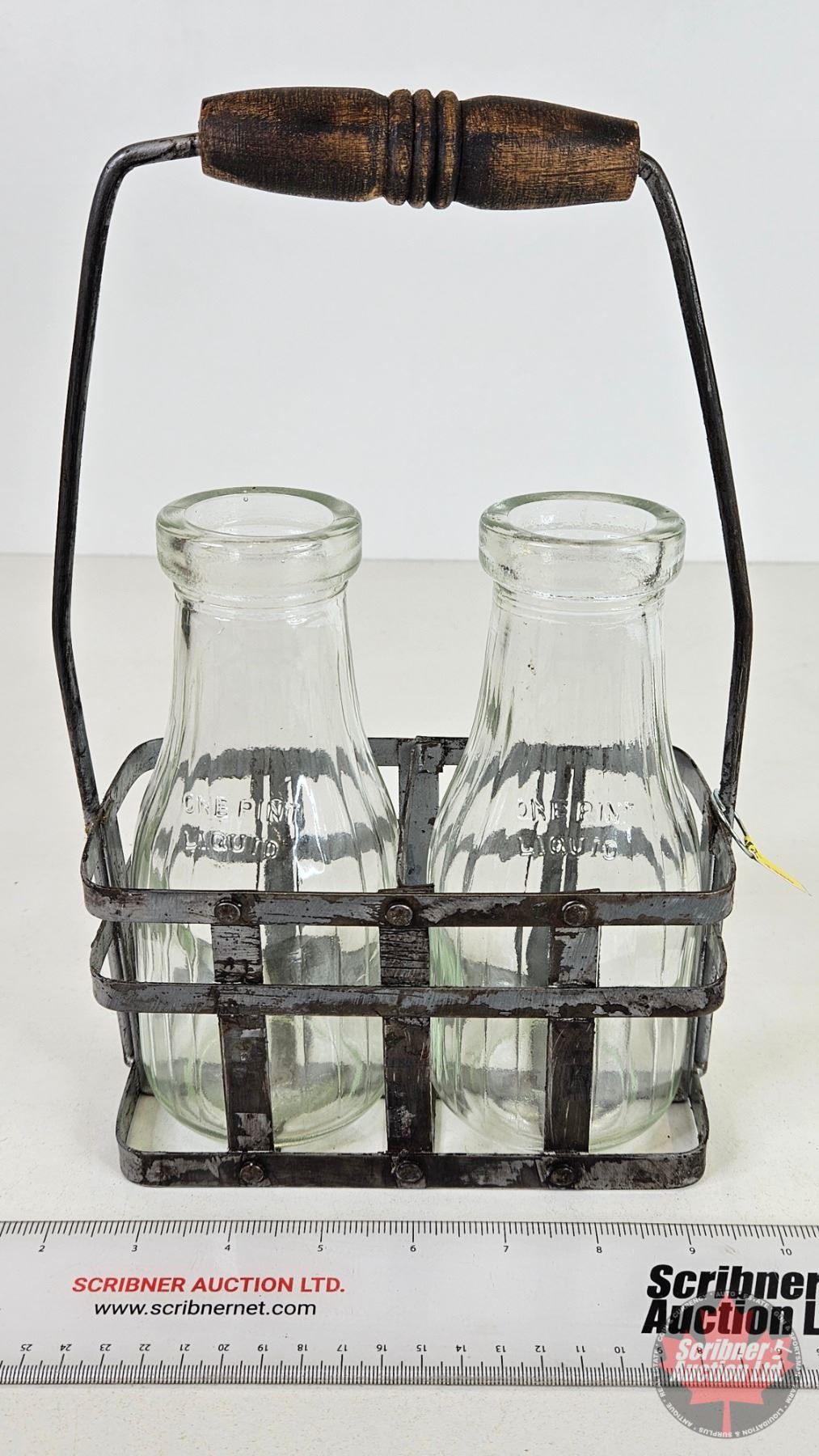 Milk Bottles & Carrier (Carrier Measures: 11-1/2"H x 7-1/2"W x 3-3/4"D)