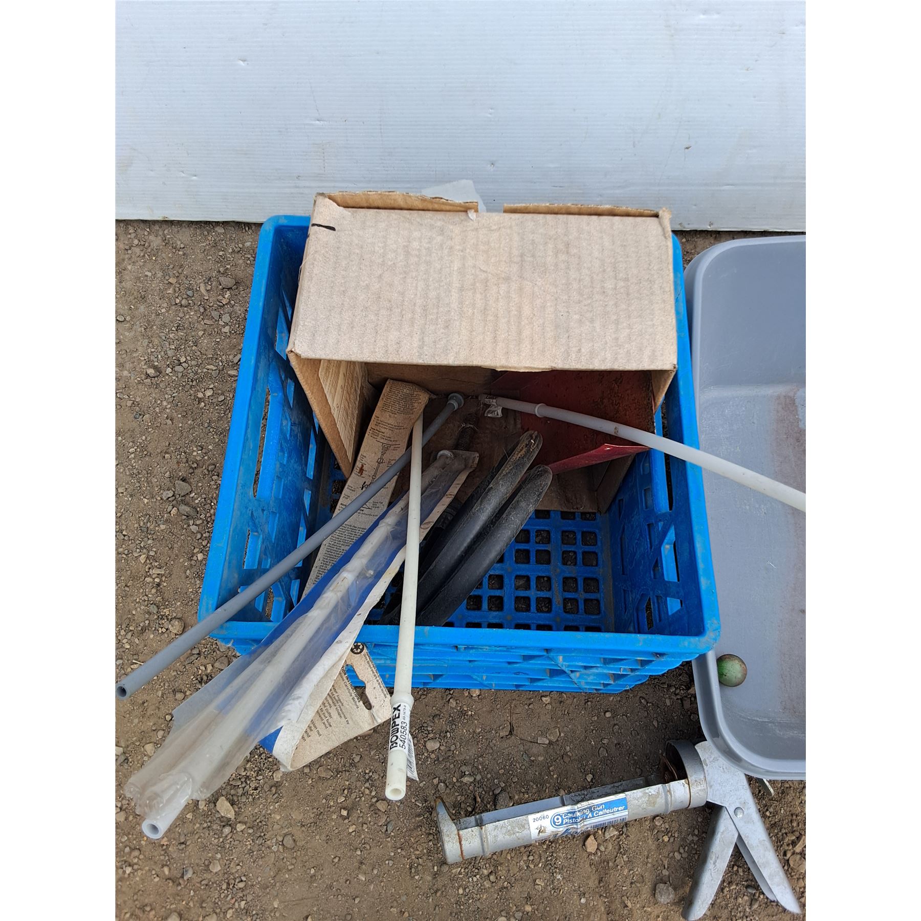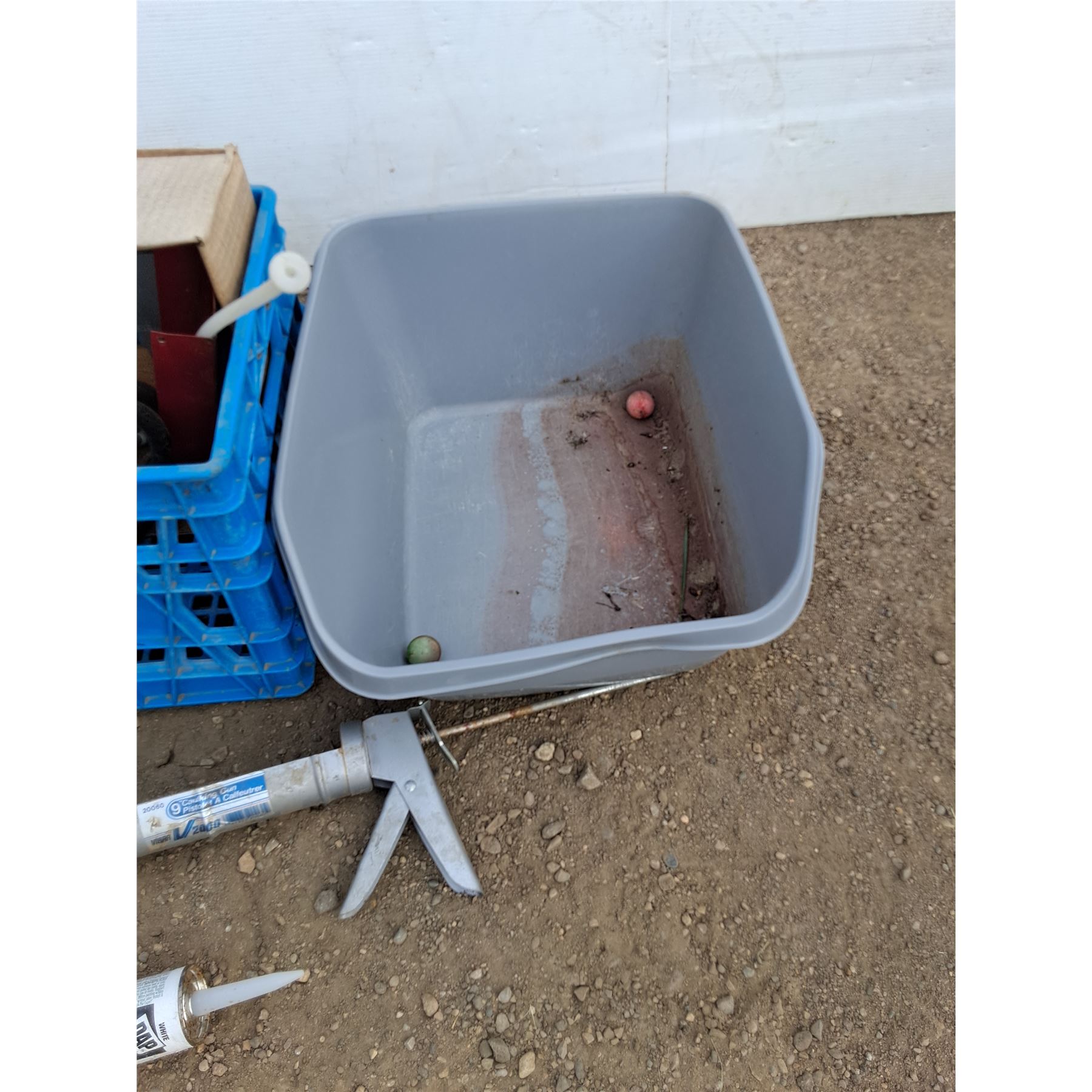 **Milk Crate, Caulking Gun, Plastic Bin, Gutter & Flashing, Misc - Cannot Ship