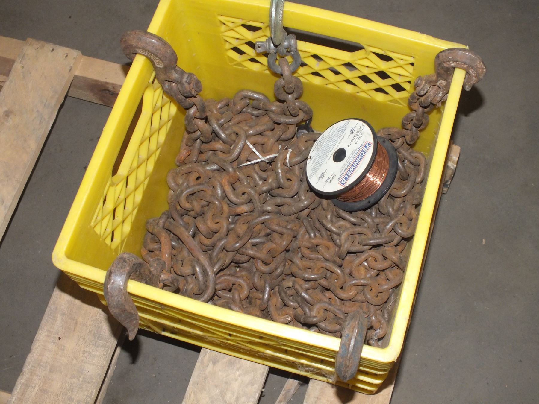 Milk Crate w/ Assorted Chain...sold as is / where is...used