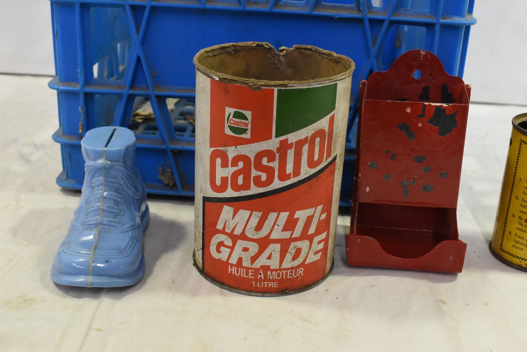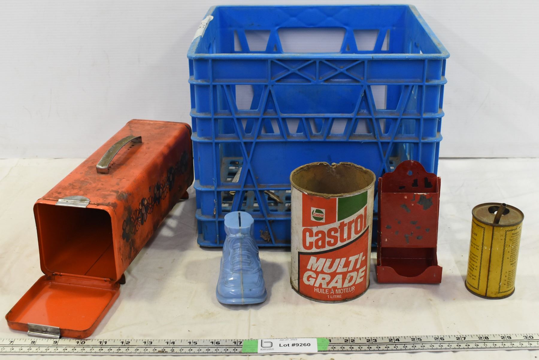 Milk Crate with Vintage Tins