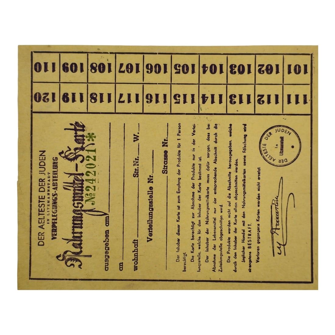 Milk Ration Card for Jewish Child from Lodz Litzmannstadt Ghetto. Recently found in an attic in Germany, these ration cards belonged to children living in the Lodz Ghetto located in Poland. They were distributed by the Jewish city council within the ghetto. These children would all eventually end up in Chelmno Death Camp where they were gassed. Each card has been researched.