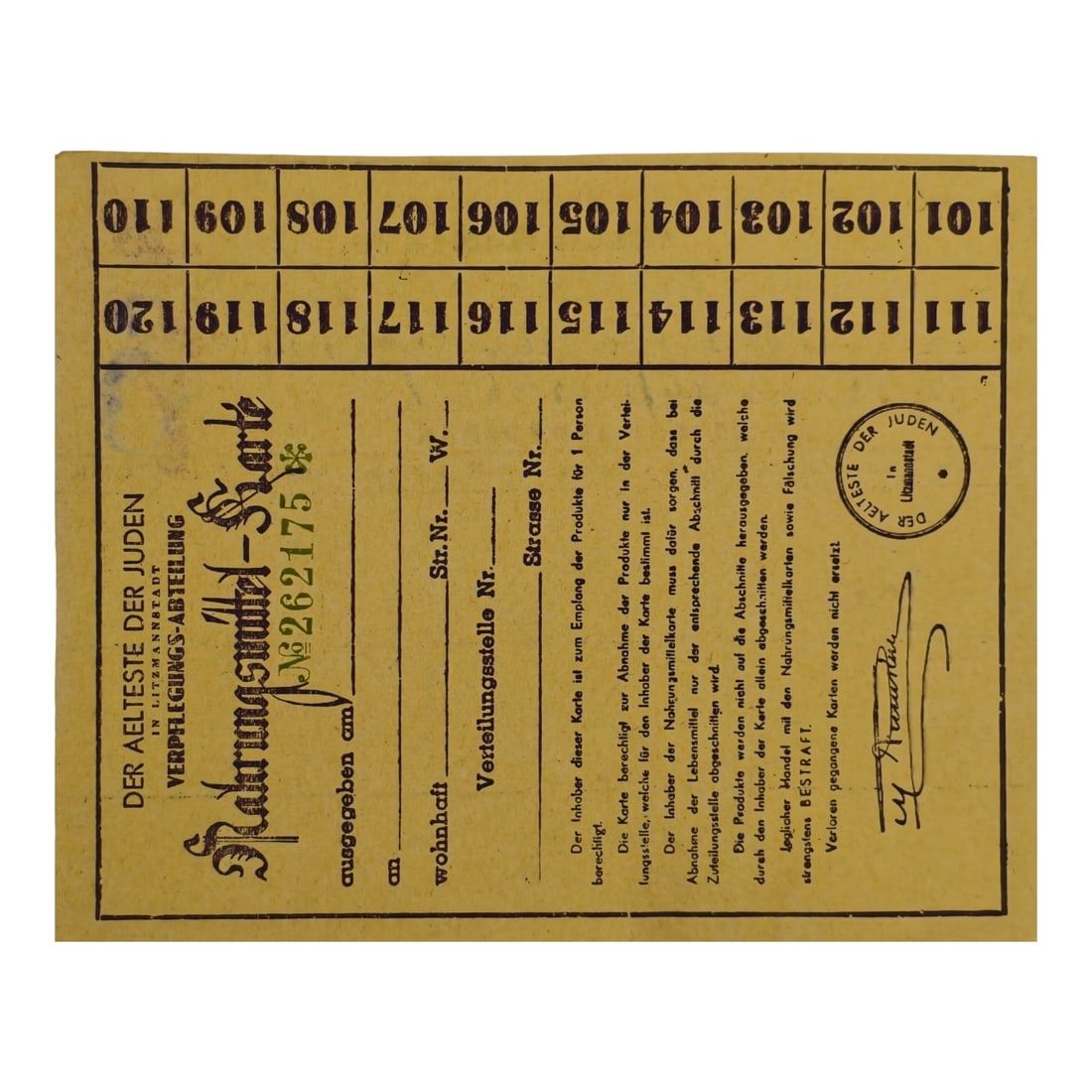Milk Ration Card for Jewish Child from Lodz Litzmannstadt Ghetto. Recently found in an attic in Germany, these ration cards belonged to children living in the Lodz Ghetto located in Poland. They were distributed by the Jewish city council within the ghetto. These children would all eventually end up in Chelmno Death Camp where they were gassed. Each card has been researched.