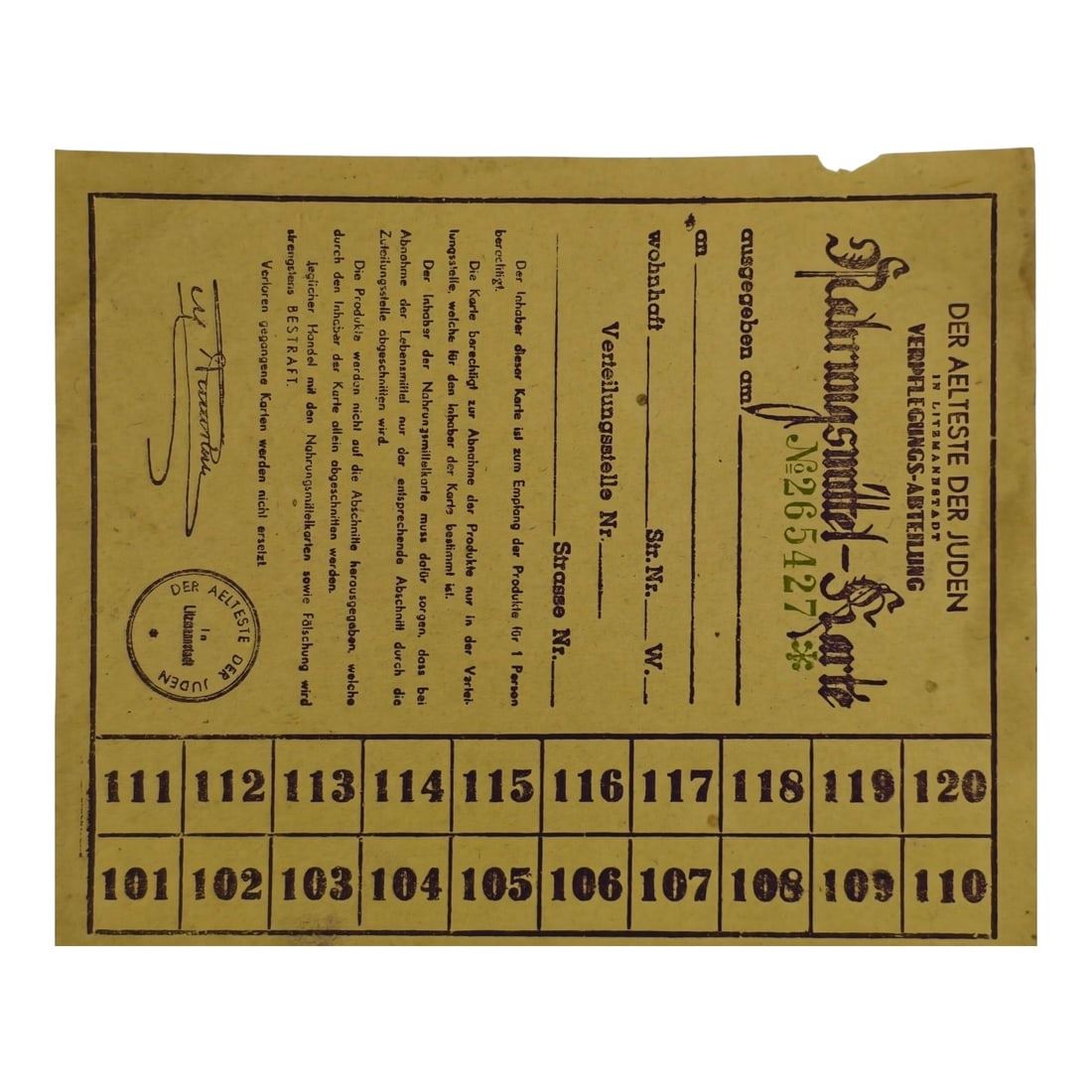 Milk Ration Card for Jewish Child from Lodz Litzmannstadt Ghetto. Recently found in an attic in Germany, these ration cards belonged to children living in the Lodz Ghetto located in Poland. They were distributed by the Jewish city council within the ghetto. These children would all eventually end up in Chelmno Death Camp where they were gassed. Each card has been researched.