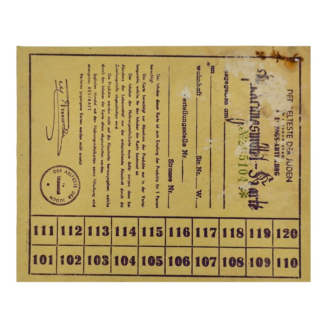 Milk Ration Card for Jewish Child from Lodz Litzmannstadt Ghetto. Recently found in an attic in Germany, these ration cards belonged to children living in the Lodz Ghetto located in Poland. They were distributed by the Jewish city council within the ghetto. These children would all eventually end up in Chelmno Death Camp where they were gassed. Each card has been researched.