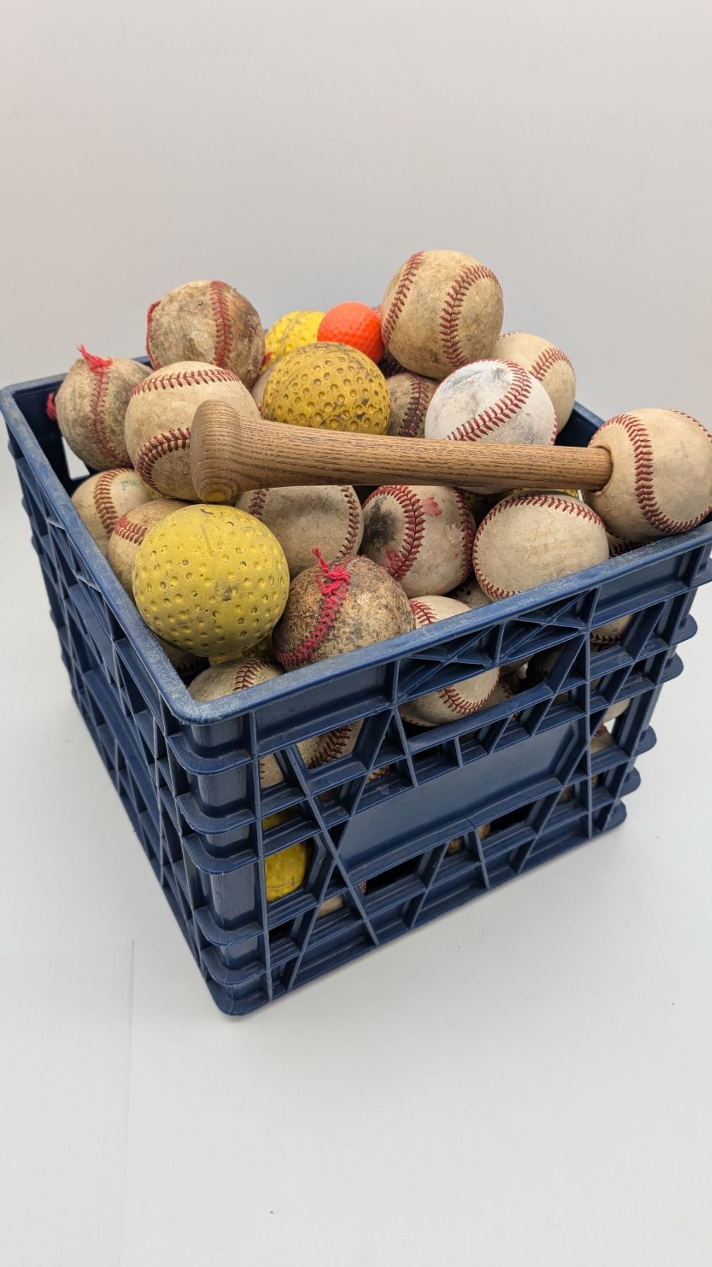 Milk crate full of Baseballs