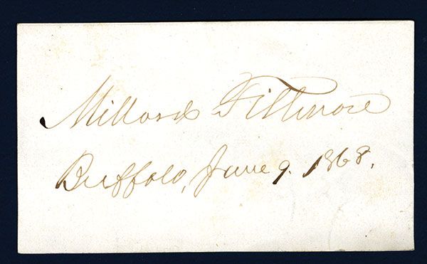 Buffalo, NY, 1868. 4 x 2.25 inches, Fillmore's signature is bold and clean and in excellent condition. Fillmore was president from 1850 to 1853 due to the death of Zachary Taylor suddenly in office in 1850. He was 13th president of the U.S.