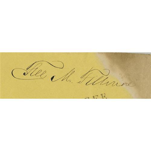 <B> Millard Fillmore Franked Envelope Signed </B></I> "<I>Free, M. Fillmore.</B></I>" 6" x 3.4", cancelled on May 15, 1862 in Buffalo, New York. Millard Fillmore never ran for president, but succeeded to the office upon the death of Zachary Taylor. <BR><BR> The envelope is in very good condition; large stain in the upper right corner, slightly covering part of the signature; paper has been cut and only the front of the envelope remains.