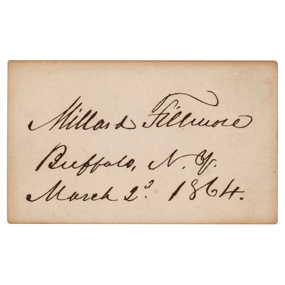 Bold ink signature, "Millard Fillmore, Buffalo, N.Y., March 2d, 1864," on an off-white 3.25 x 2 card. In fine condition.
