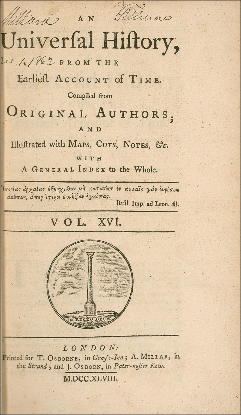 Signed book: An Universal History, from the Earliest Account of Time, Vol. XVI (only). London: T. Osborne, A. Millar, and J. Osborn, 1747. Handsomely rebound in modern boards, 5.5 x 8.5, 629 pages. The title page bears Fillmore’s ownership signature, “Millard Fillmore, Dec. 1, 1862.” Scattered light toning and foxing to signed and inside pages, several pencil notations to opening pages, and staining to fore edges, otherwise very good to fine condition. The original covers are not present, but the book has been rebound as noted above. Pre-certified John Reznikoff/PSA/DNA and RRAuction COA.