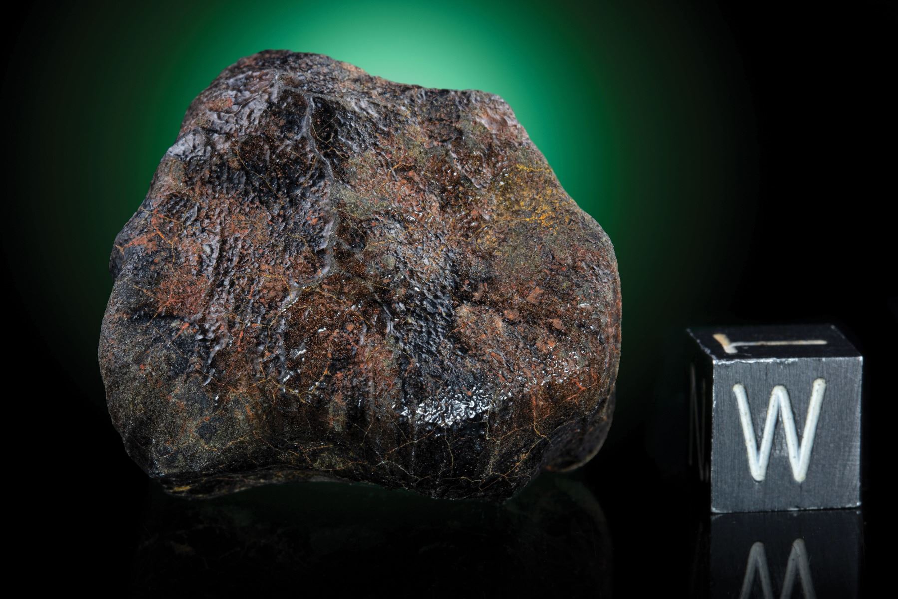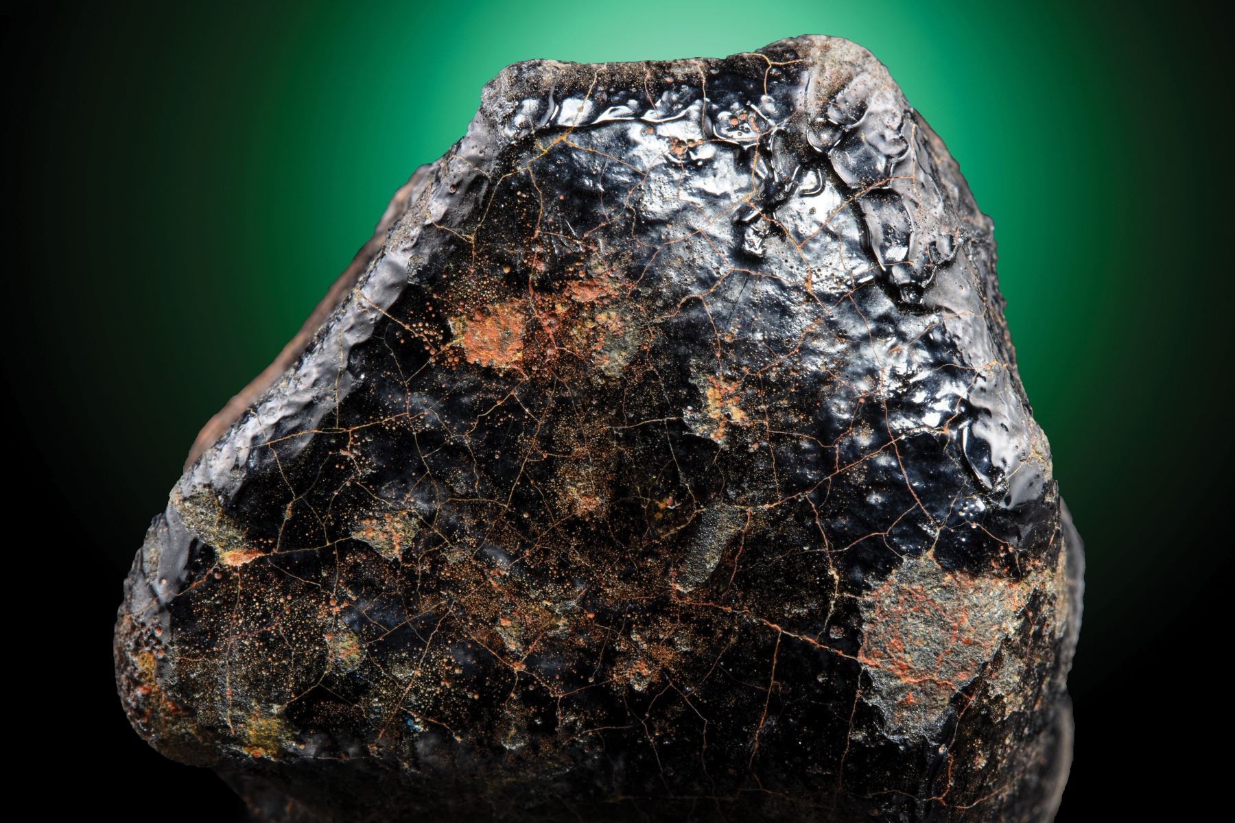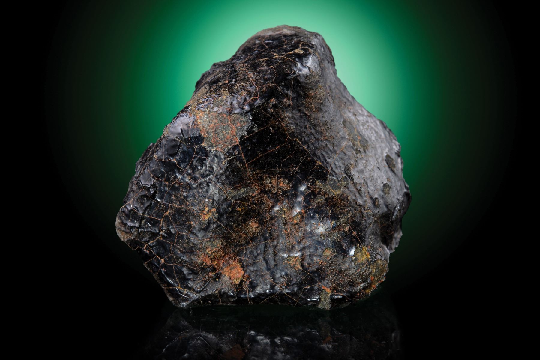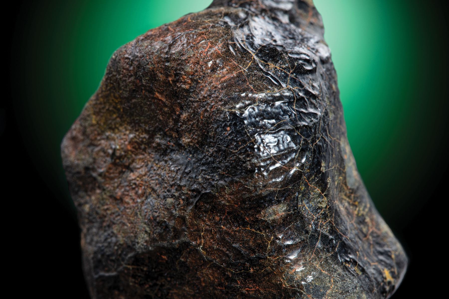 One of the most desirable characteristics of Millbillillie is its remarkably black glossy fusion crust which, in some cases—such as this fine example—is so shiny it looks almost like sprayed-on enamel paint! Fusion crust occurs when the surface of incoming meteorites is super-heated in our atmosphere. Millbillillie is one of the few meteorites that displays such a shiny, glassy crust. Accompanied by a certificate of authenticity from Aerolite Meteorites.