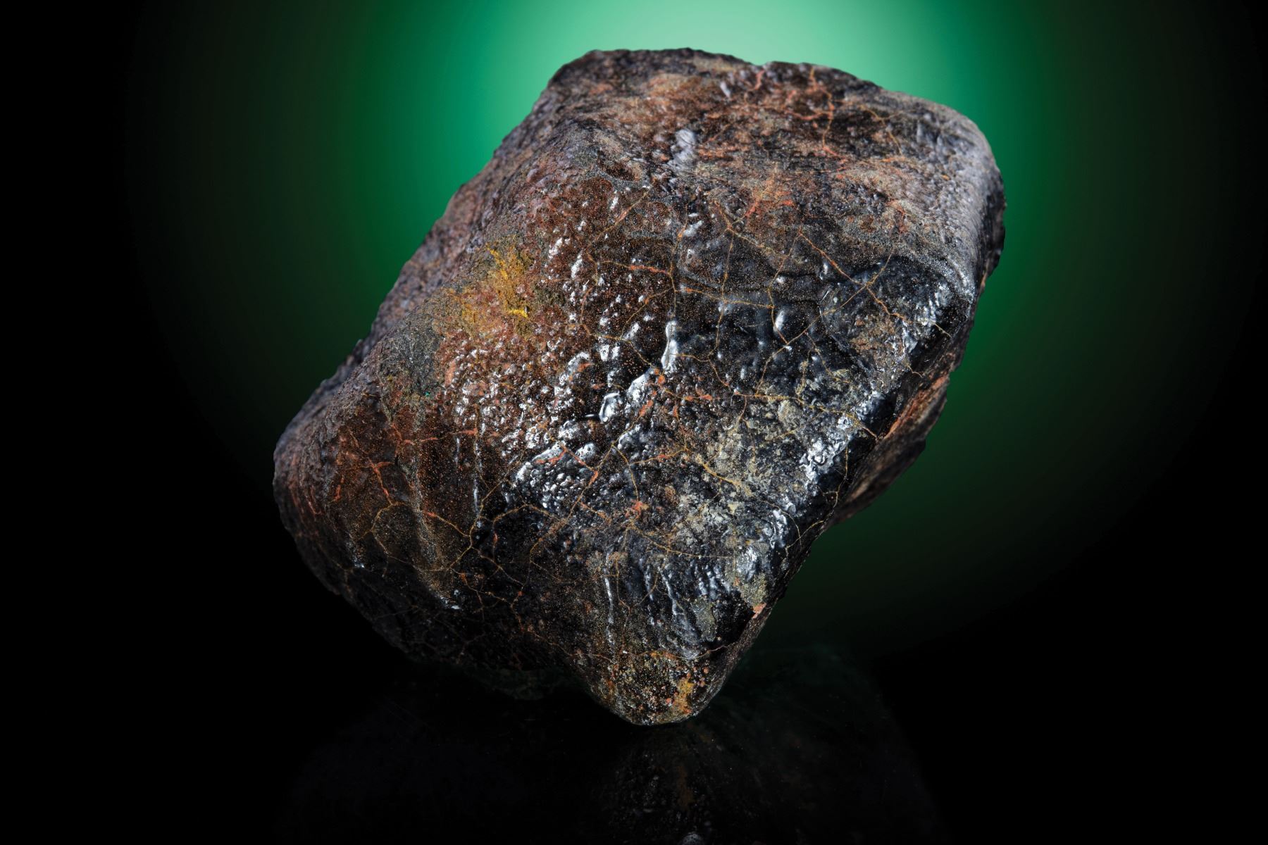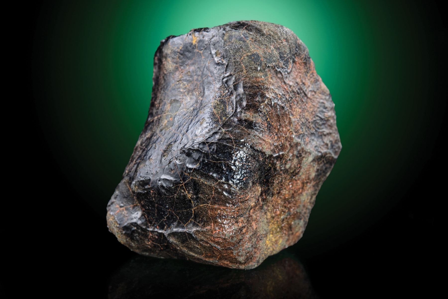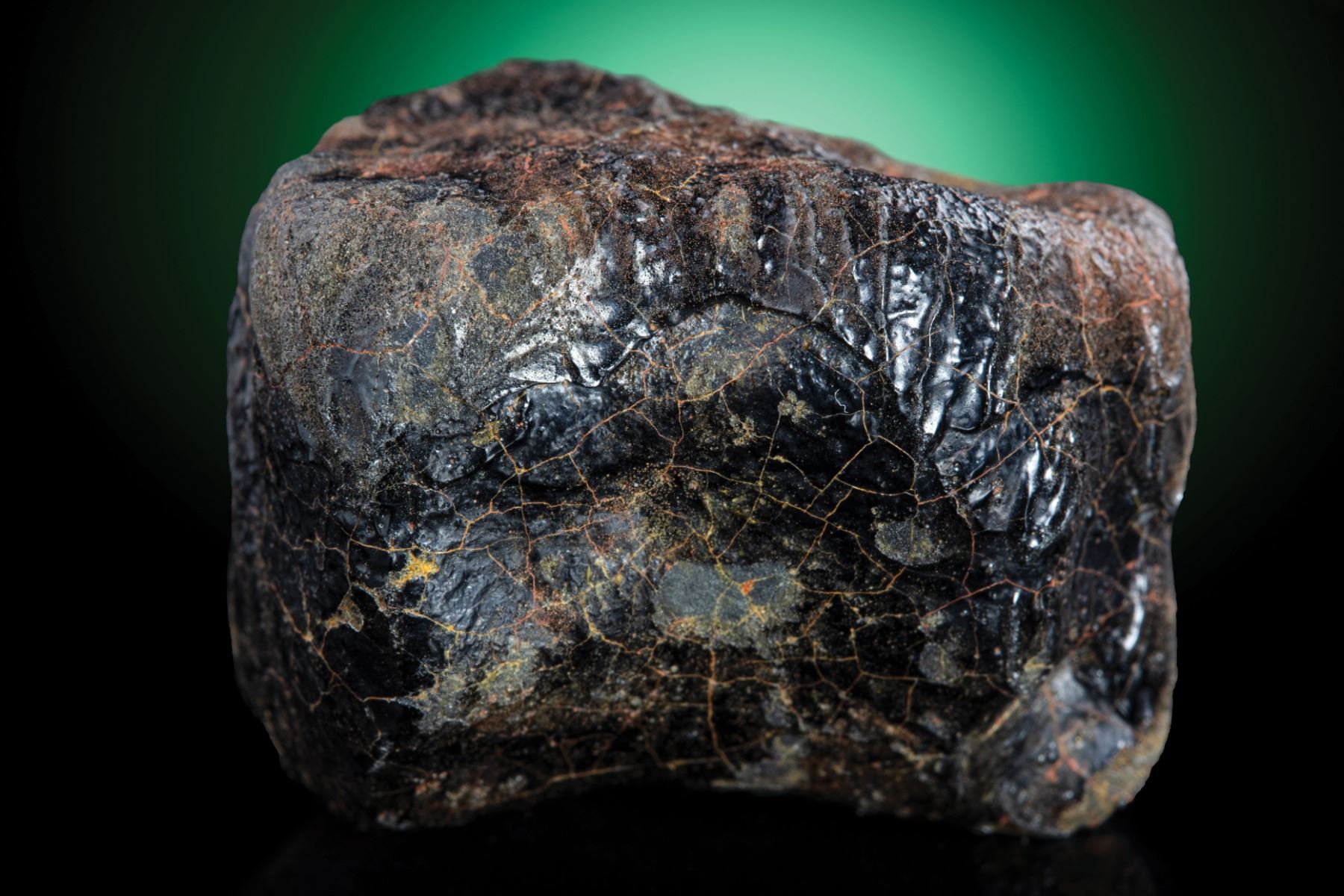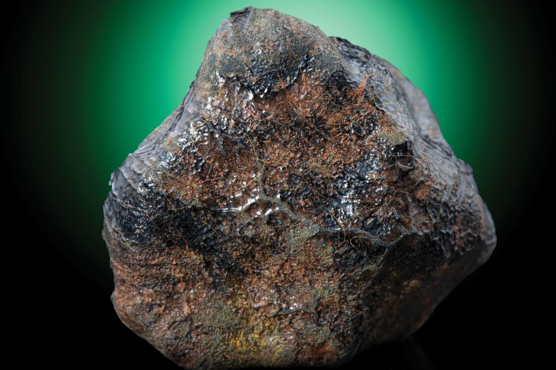 One of the most desirable characteristics of Millbillillie is its remarkably black glossy fusion crust which, in some cases—such as this fine example—is so shiny it looks almost like sprayed-on enamel paint! Fusion crust occurs when the surface of incoming meteorites is super-heated in our atmosphere. Millbillillie is one of the few meteorites that displays such a shiny, glassy crust. Accompanied by a certificate of authenticity from Aerolite Meteorites.