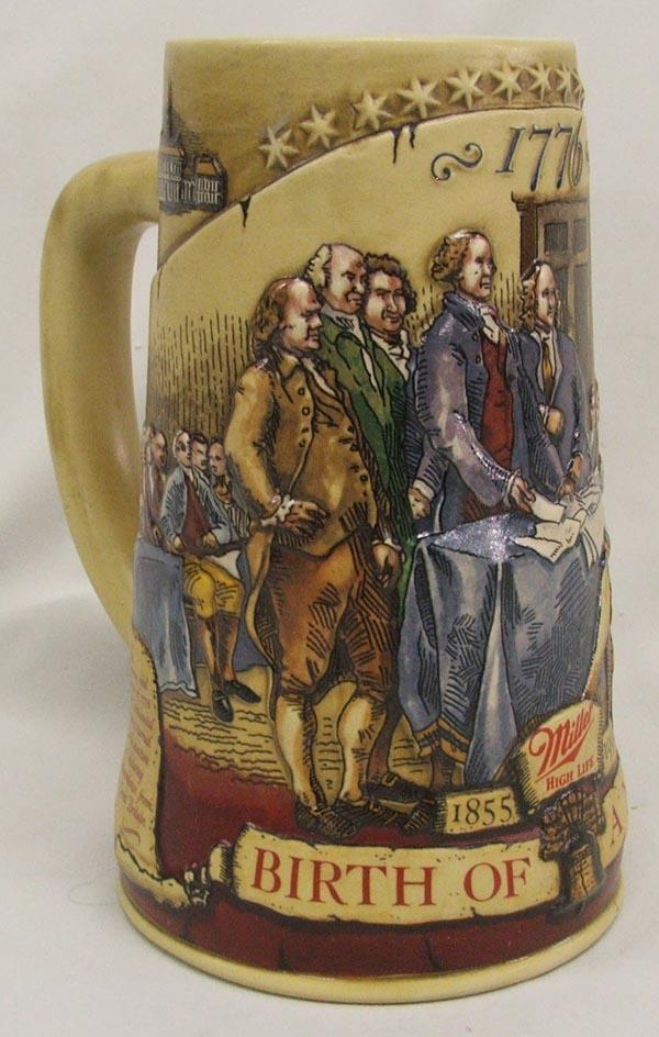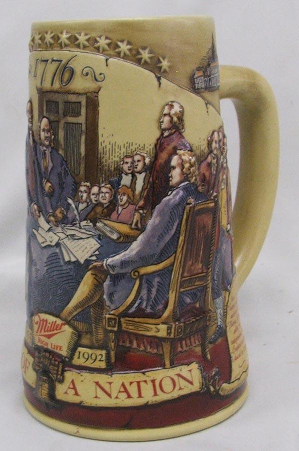 Miller Beer Stein 1992, ''Birth of a Nation'' 2nd in the serious Convention of 1776, manufactured in Brazil, measures approx. 7'' x 6''. SHI $25.