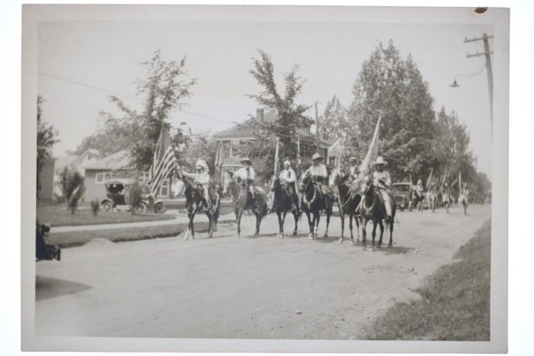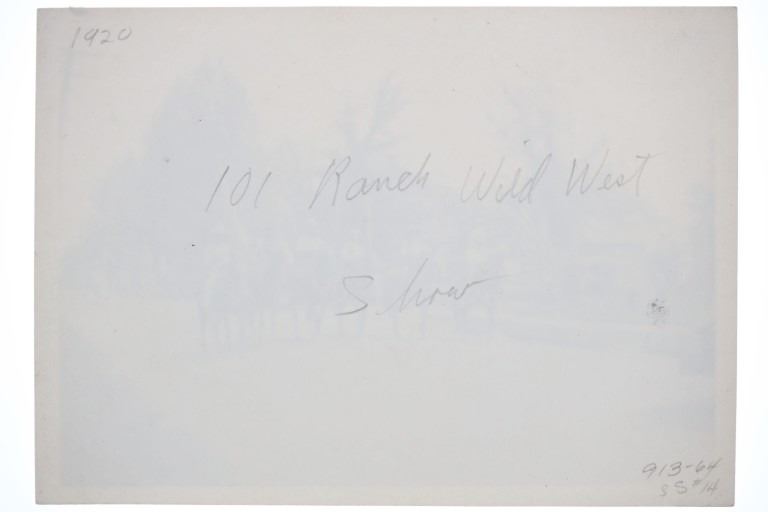Featured in this lot is this photograph from Miller Bro's 101 Ranch Pre-Show Parade photograph circa 1920. The photograph features a wonderfully and professionally crafted silver gelatin construction that shows a VIP of the show or coordinator of the show riding a paint stallion in a show saddle down the main street of the location the show was to take place. The back of the photograph is written as follows: 300 - 1920 - 101 Ranch Wild West Show - 913-64 - SS-14. The Miller Bros. 101 Ranch Wild West Show was a hugely popular traveling entertainment in the early 20th century, bringing a dramatic vision of the American West to towns and cities across the Midwest. During its extensive Midwest tours, the show played to large crowds in states like Kansas, Missouri, Nebraska, and Illinois, where rail lines made it possible to transport hundreds of performers, horses, and buffalo from stop to stop. These tours helped connect rural and urban audiences to frontier imagery through rodeo contests, trick riding, sharpshooting, and performances by Native American cowboys, making the Midwest a core region in the show’s rise to national fame. The condition of this 101 Ranch Show photograph is well preserved with some wear and spotting to the outside edge of the photograph but otherwise shows a well preserved condition. The measurements of this photograph is 4 7/8" x 7".
