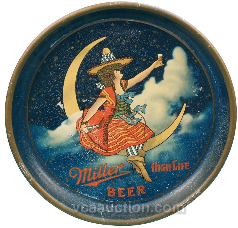 Miller High Life Beer Tin Serving Tray - 13" Diam.