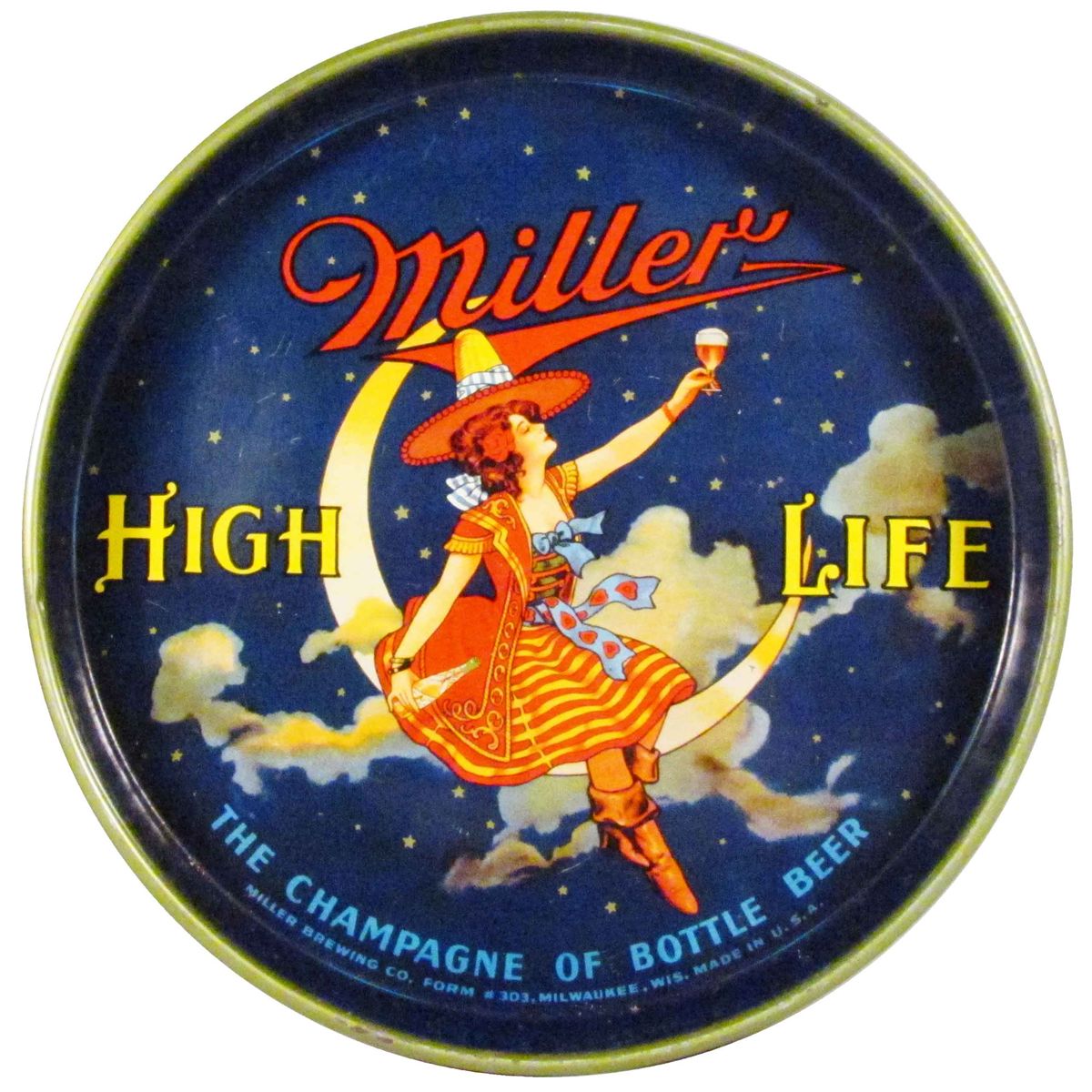 Miller High Life Tin Serving Tray. Very minor edge ware otherwise excellent condition. 12 inch diameter.