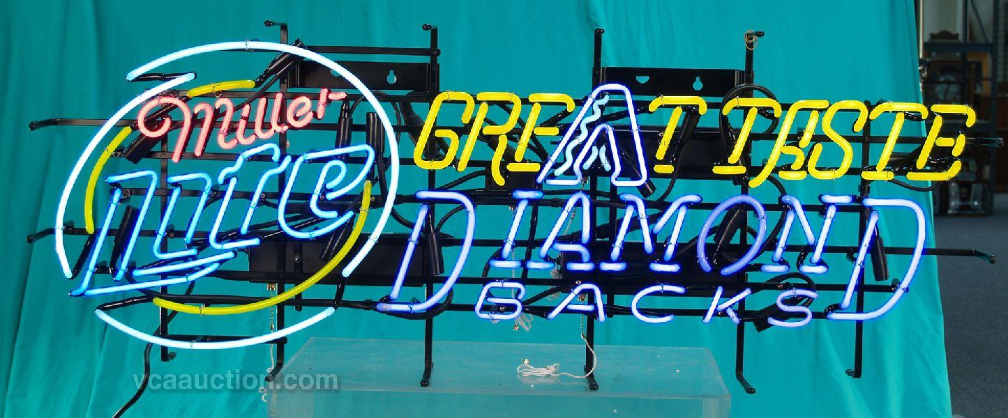 Miller Lite Beer Neon Sign, "Great Taste- Arizona Diamond Backs" - 50" x 19"