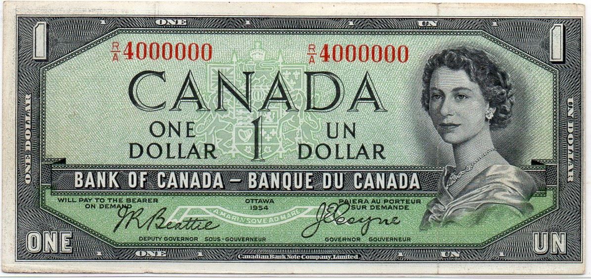 Million; 1954 $1 BC-29b #RA4000000, CCCS VF20.