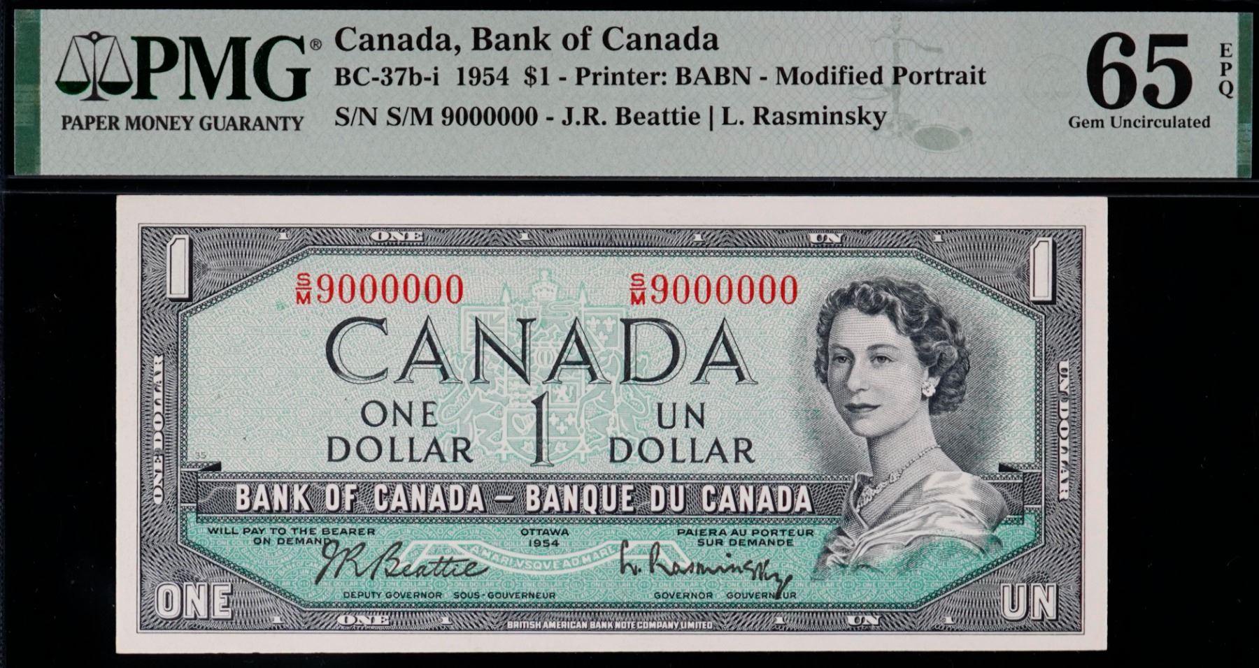 Million; 1954 $1 BC-37b-i N3 #S/M 9000000 PMG Gem Uncirculated-65 EPQ