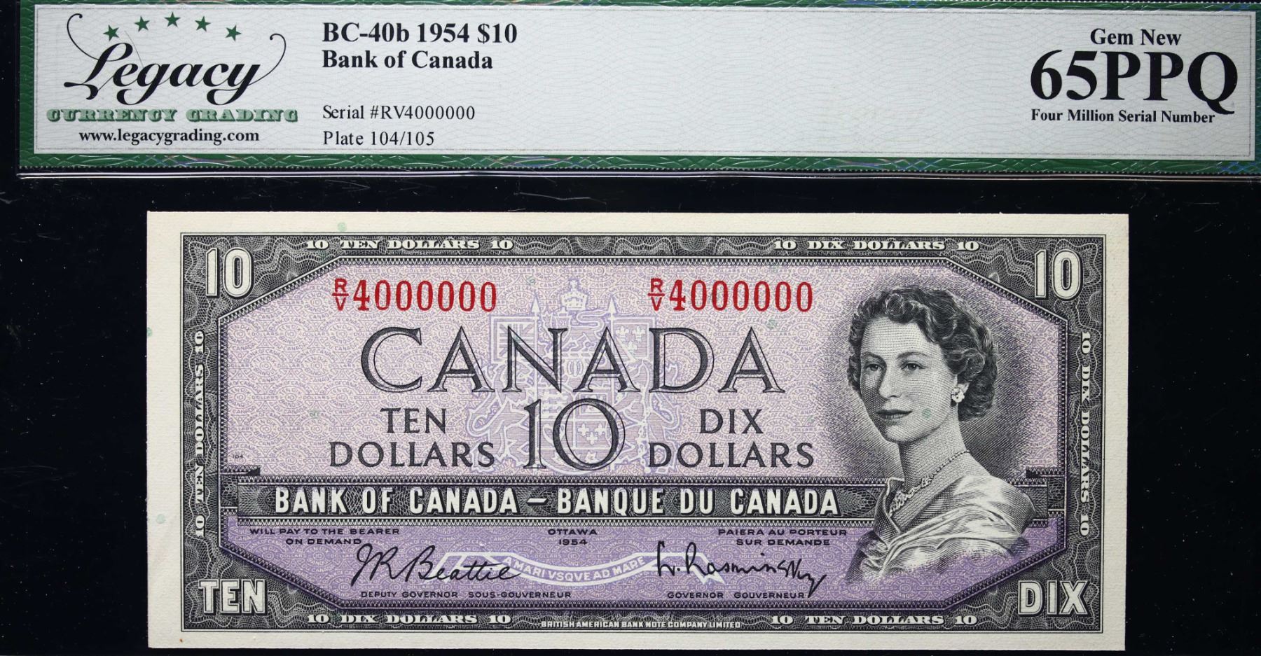 Million; 1954 $10 BC-40B #R/V4000000 LCG Gem Uncirculated-65PPQ