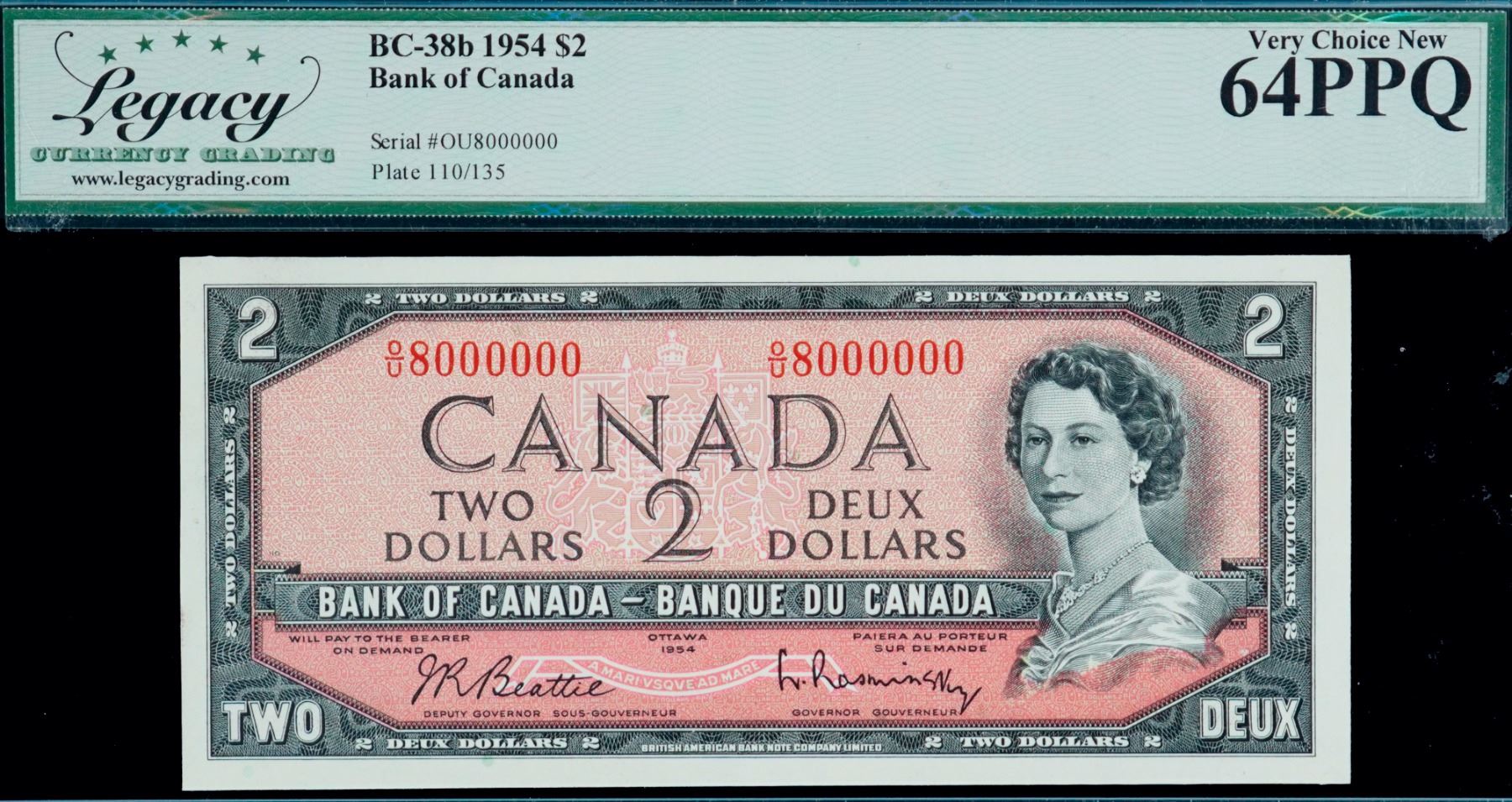Million; 1954 $2 BC-38b O/U8000000 Legacy Currency Grading Choice Uncirculated-64PPQ