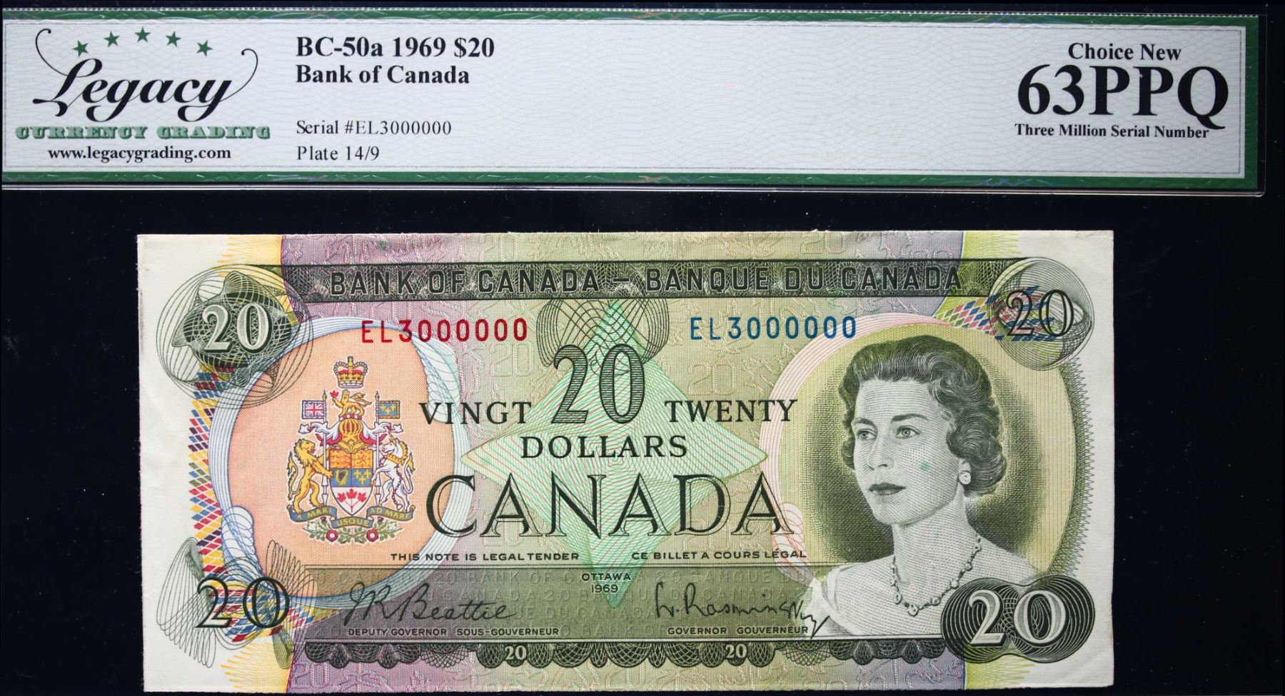 Million; 1969 $20 BC-50A #EL3000000 LCG Choice Uncirculated-63PPQ