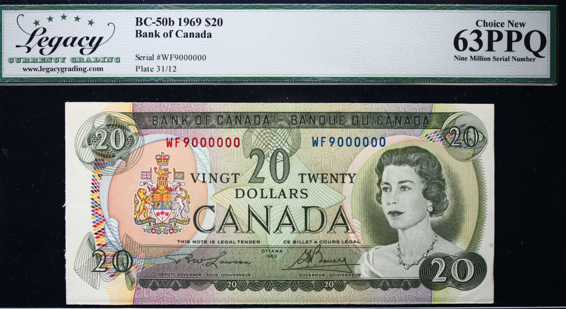Million; 1969 $20 BC-50B #WF9000000 LCG Choice Uncirculated-63PPQ