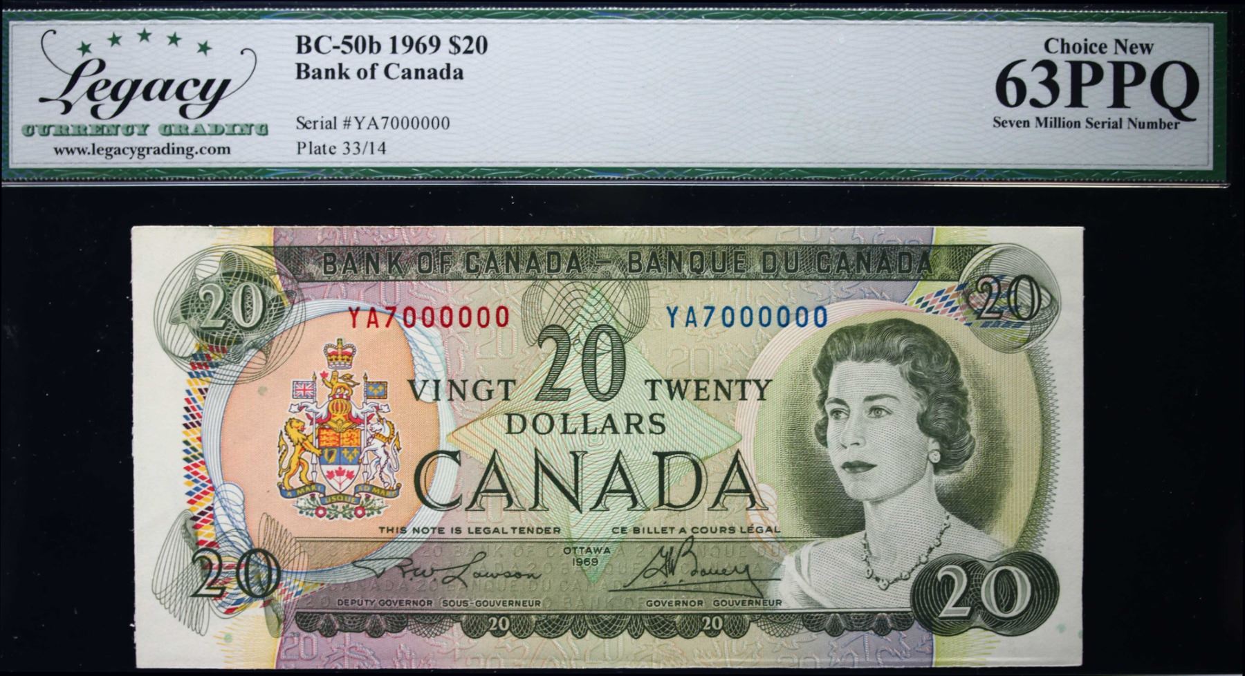 Million; 1969 $20 BC-50B #YA7000000 LCG Choice Uncirculated-63PPQ