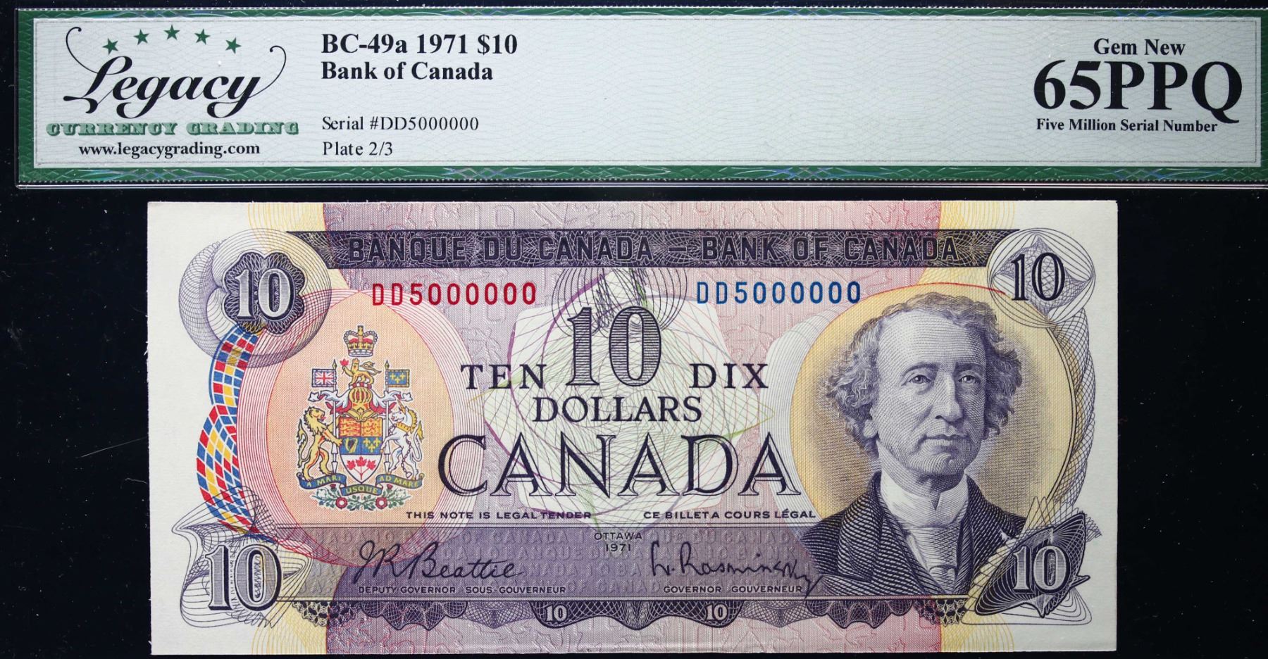 Million; 1971 $10 BC-49A #DD5000000 LCG Gem Uncirculated-65PPQ