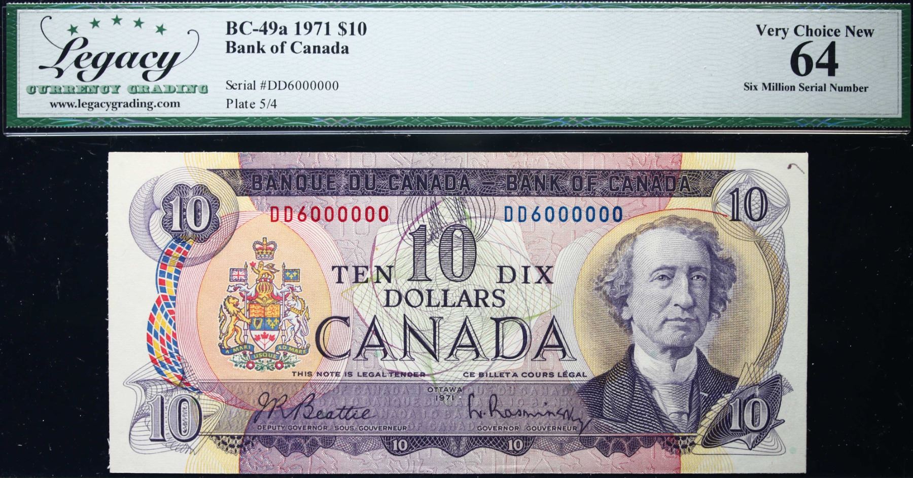 Million; 1971 $10 BC-49A #DD6000000 LCG Choice Uncirculated-64