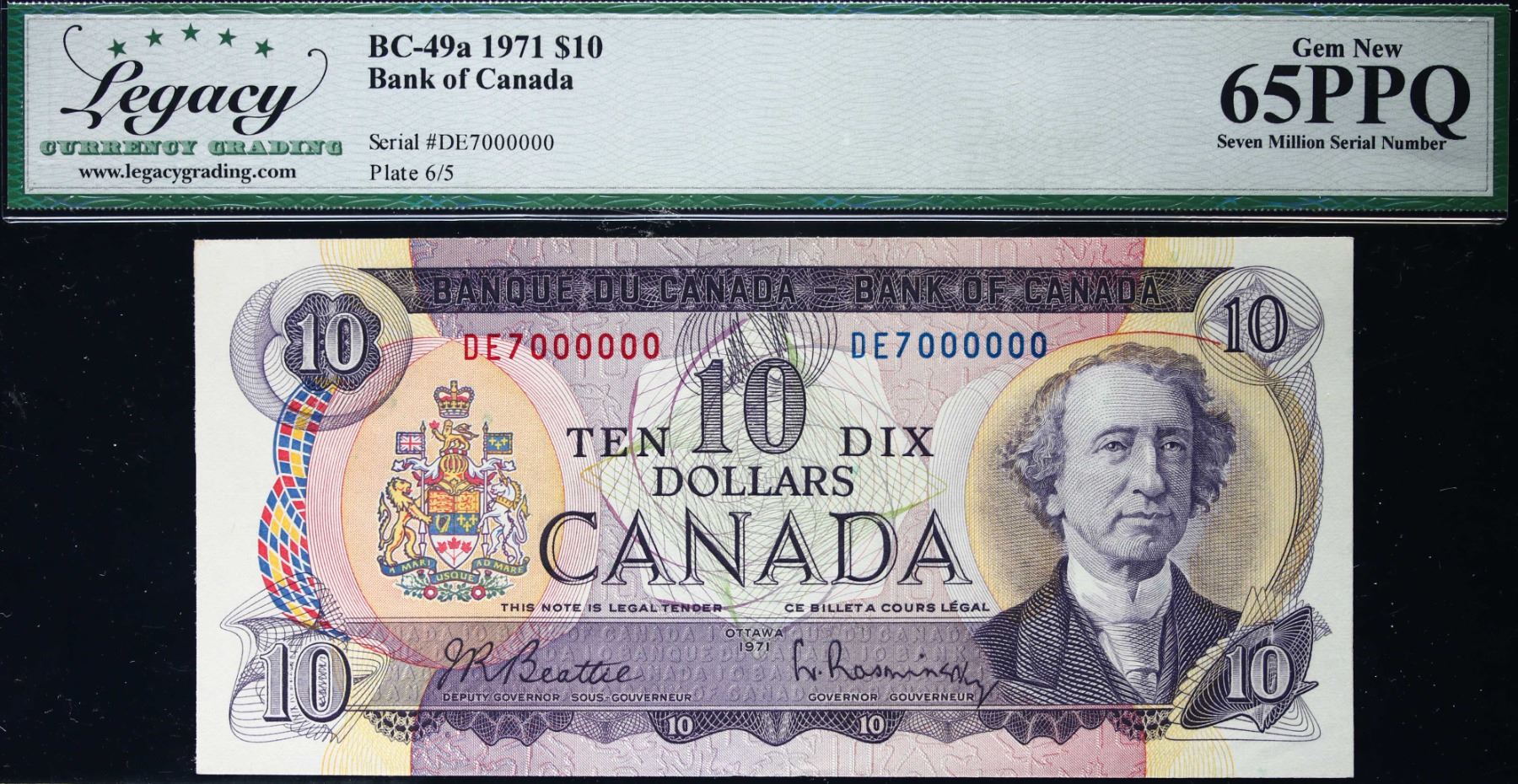 Million; 1971 $10 BC-49A #DE7000000 LCG Gem Uncirculated-65PPQ