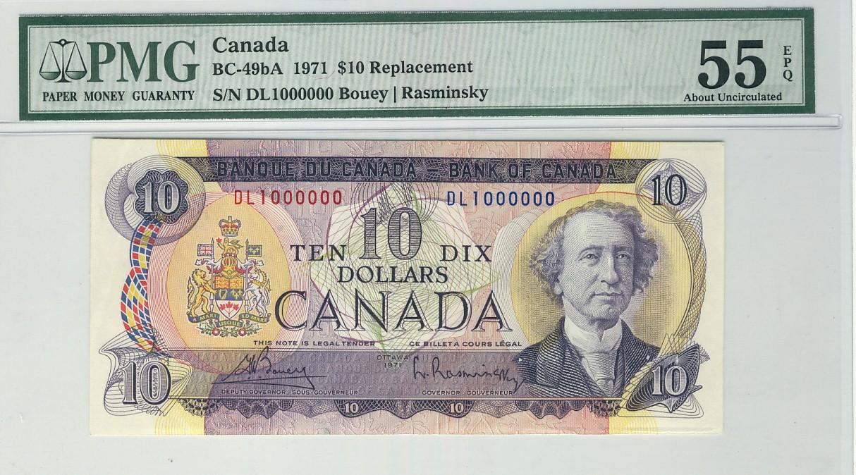 Million 1971 $10 BC-49bA #DL1000000 PMG AU55 EPQ. A nice example.