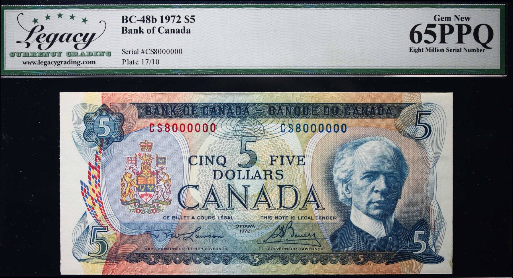 Million; 1972 $5 BC-48B #CS8000000 LCG Gem Uncirculated-65PPQ