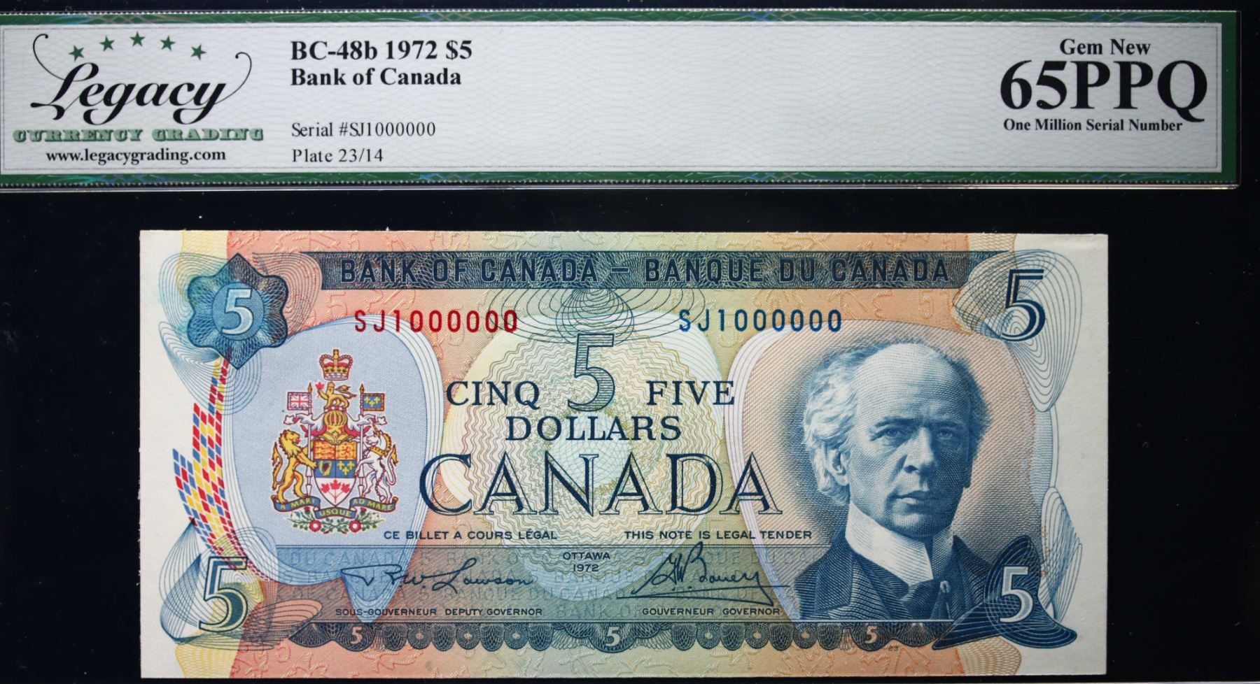 Million; 1972 $5 BC-48B #SJ1000000 LCG Gem Uncirculated-65PPQ