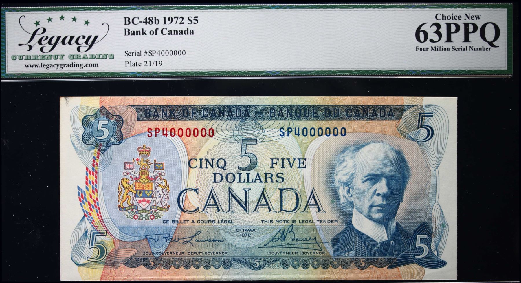 Million; 1972 $5 BC-48B #SP4000000 LCG Choice Uncirculated-63PPQ