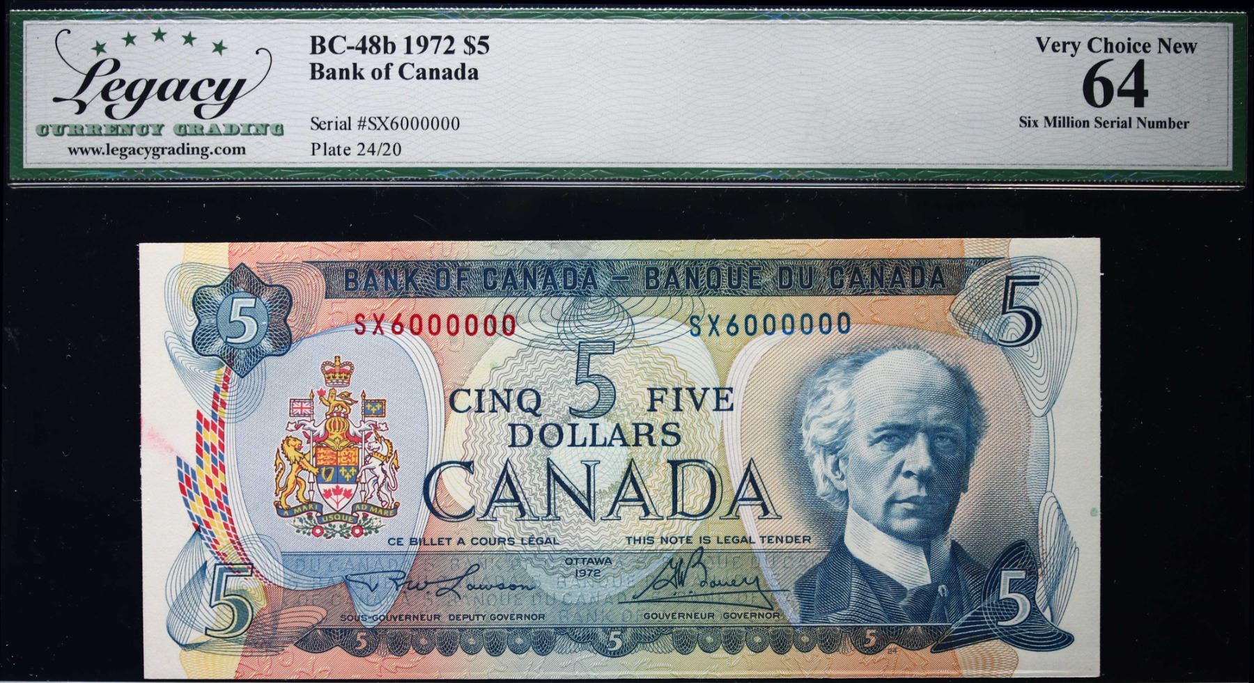 Million; 1972 $5 BC-48B #SX6000000 LCG Choice Uncirculated-64
