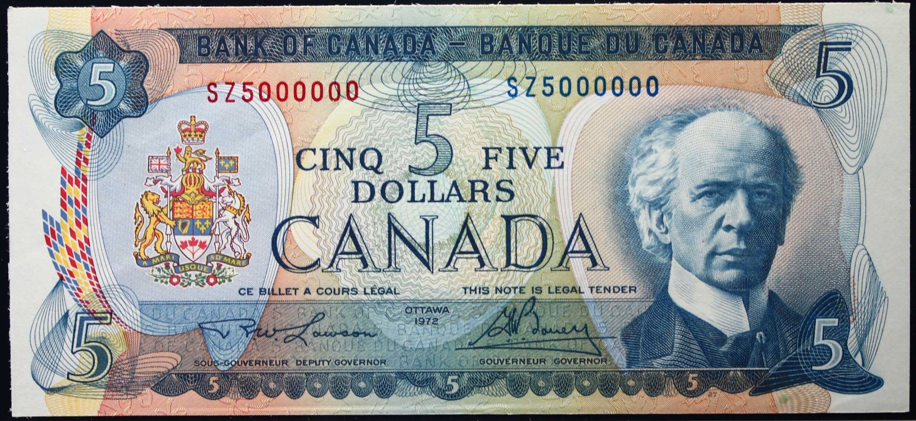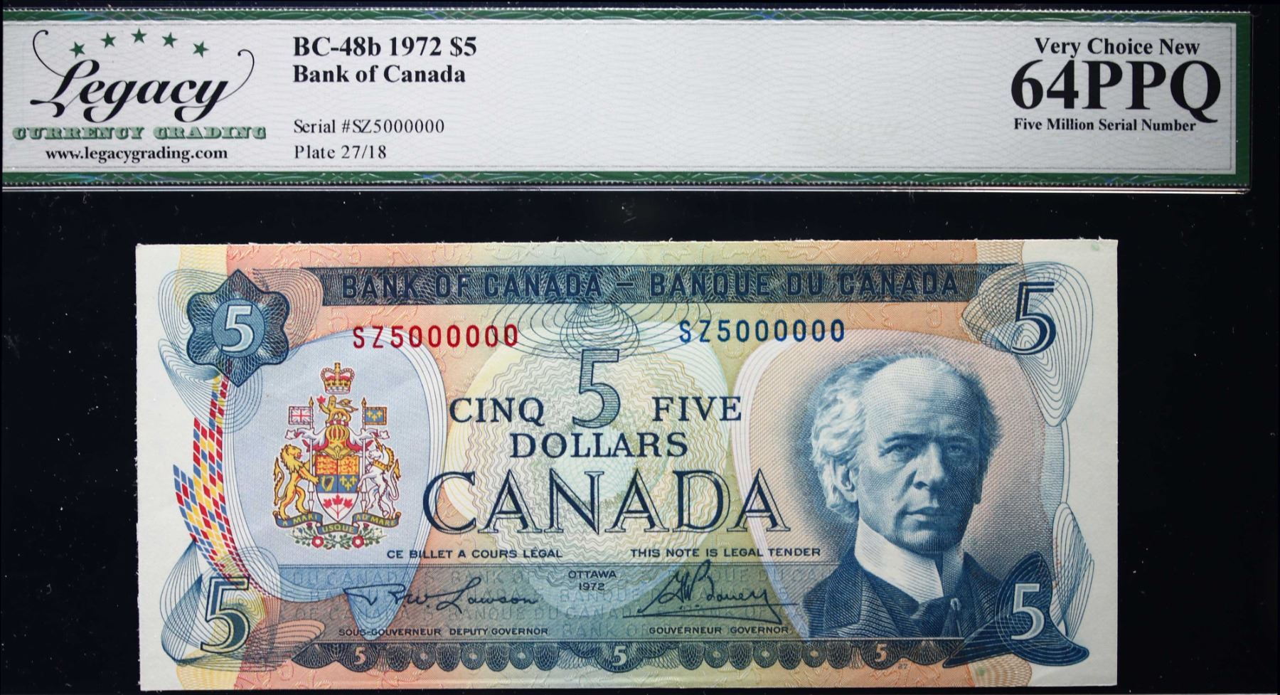 Million; 1972 $5 BC-48B #SZ5000000 LCG Choice Uncirculated-64PPQ