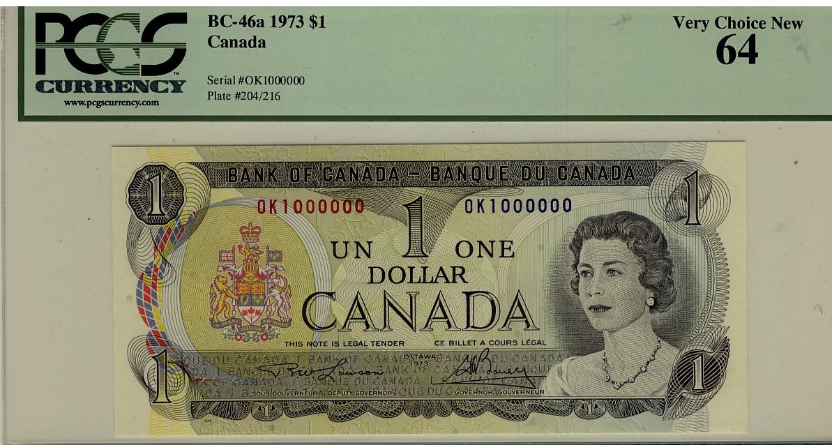 Million 1973 $1 BC-46a OK1000000 PCGS UNC64