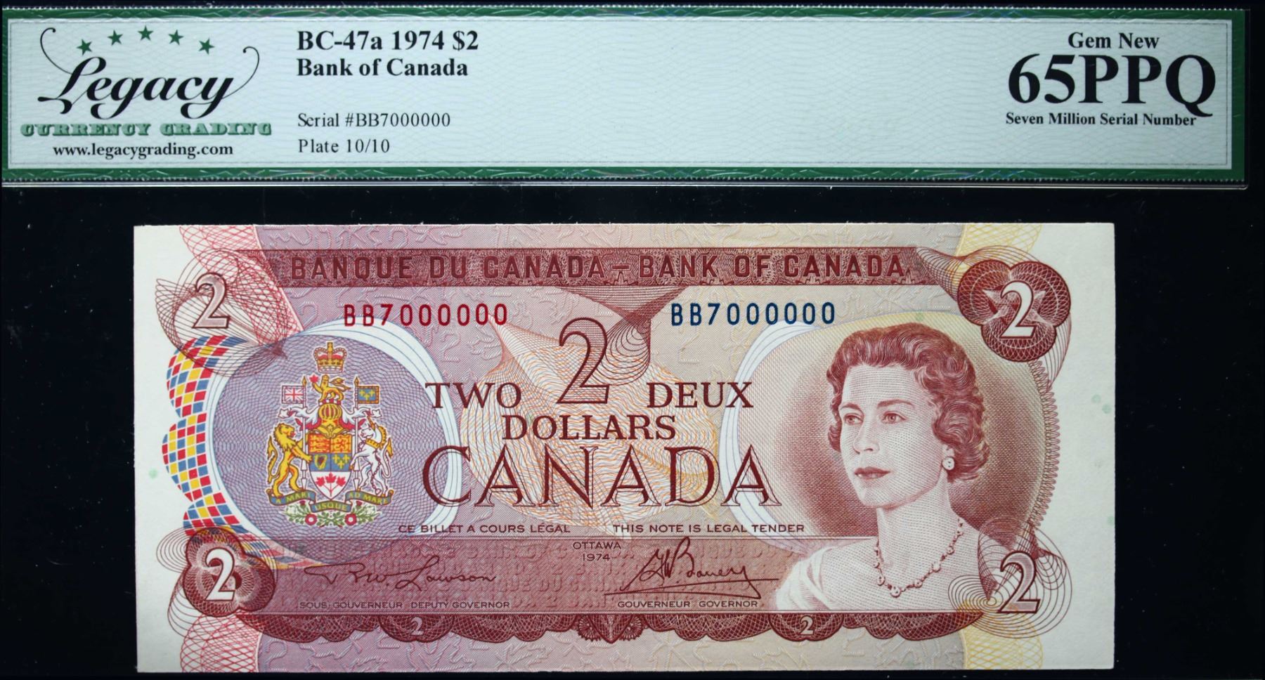 Million; 1974 $2 BC-47A #BB7000000 LCG Gem Uncirculated-65PPQ
