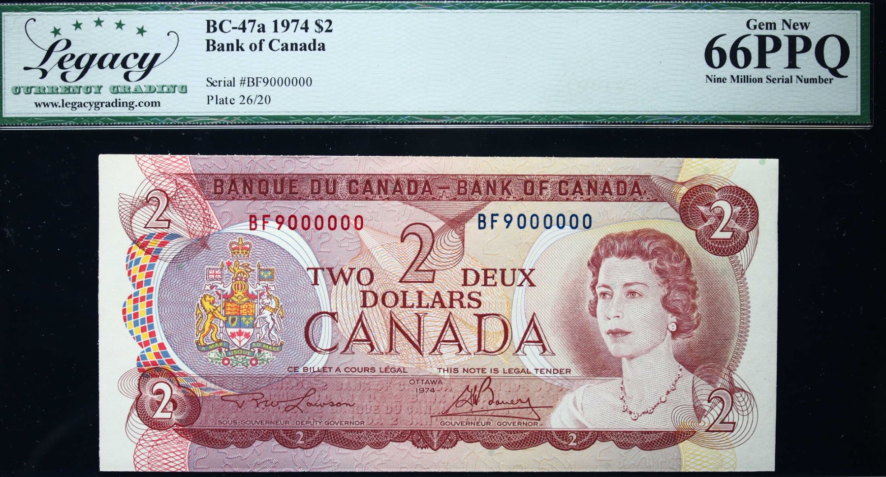 Million; 1974 $2 BC-47A #BF9000000 LCG Superb Gem Uncirculated-66PPQ
