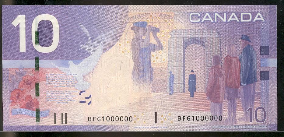 Million, 2008 $10 BC-68b #BFG1000000. Note is Original UNC.