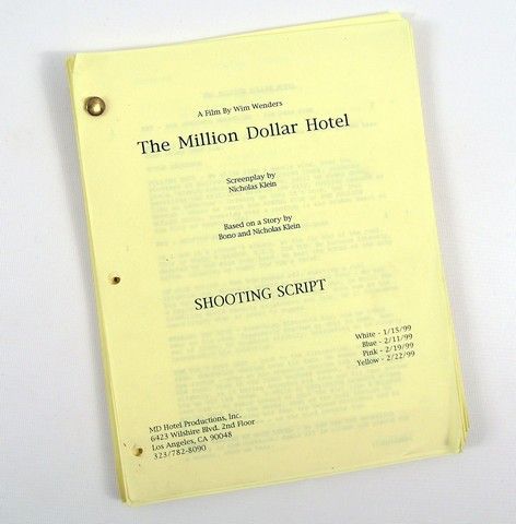 Million Dollar Hotel Original Production Script Of Richard Edson (Joe) - In 2000 Mel Gibson wanted to widen his range as an actor by making "The Million Dollar Hotel" with his own production company, and famous independent German director Wim Wenders. From a story by rock legend Bono, Gibson plays an FBI agent who goes to a flea-bitten skid-row hotel filled with the lowest of the poor and mentally ill to solve a murder. As is Wender's trademark he filled the cast with an eclectic group of actors including Milla Jovinich, Jimmy Smits, Amanda Plummer, Bud Cort, and equally legendary cult actor and rocker, Richard Edson. This is Edson's personal on-set production script that he used through the filming. It comes from his personal collection, and he will both sign and personalize the script on request to the buyer.
