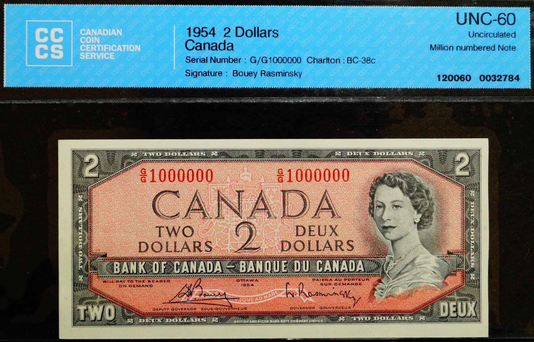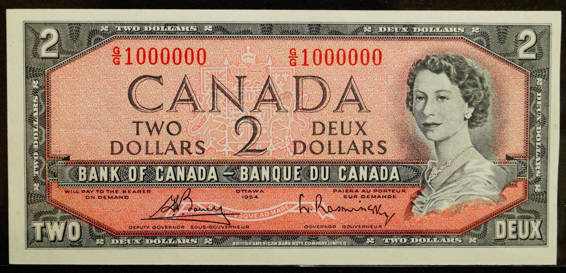 1954 $2 Dollar BC-37C, Bank of Canada 'Million Serial Number' Banknote