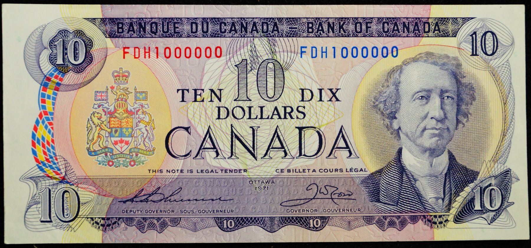 1971 $10 Dollar BC-49e, Bank of Canada 'Million Serial Number' Banknote