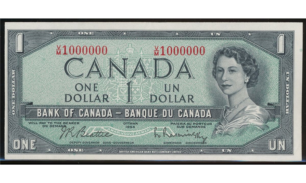 Million issue; 1954 $1 BC-37b-i #VM1000000. Original AU issue.
